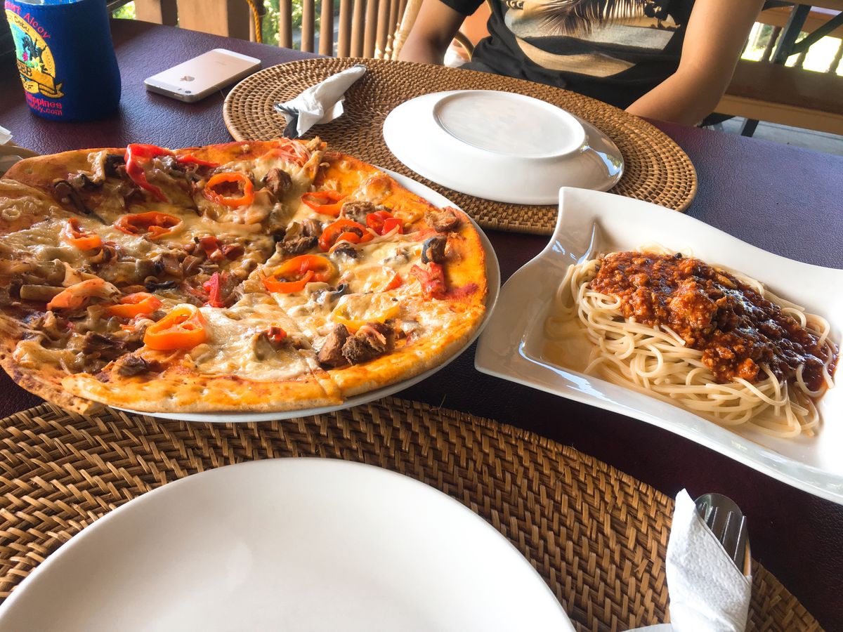 レストランは眺めが素晴らしく、味も美味しかったです。ここはドリンクが有料でマンゴージュースがだいたい110ペソほどだったと思います。