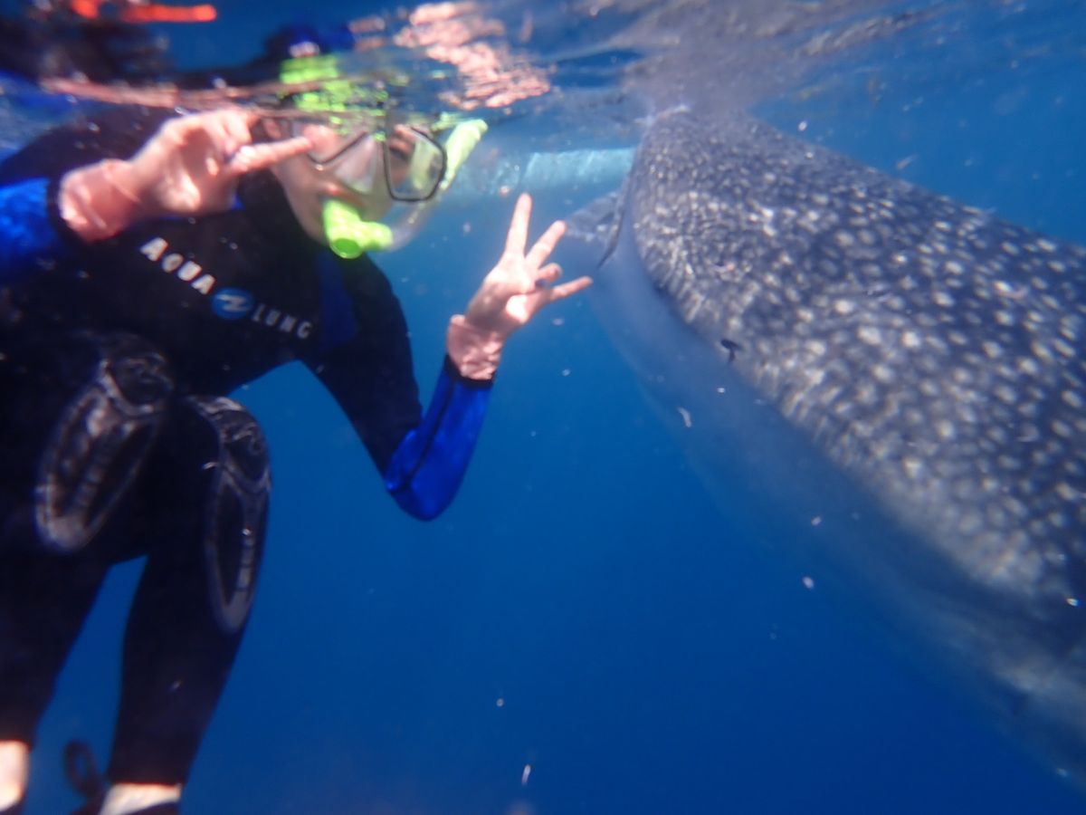 着いた時の喜びと滅多ジンベイザメと遊泳する事は人生でもなかなかなく非常に素晴らしい体験になったかと思います。