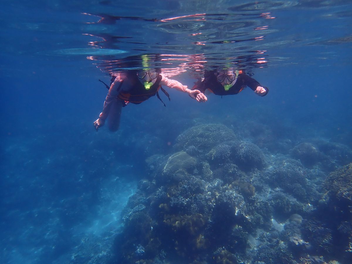 私はライフジャケットを外していたのでたくさん潜ったりできたけど、ライフジャケットをつけてる人は現地スタッフの人に半ば無理矢理海に沈められます。笑