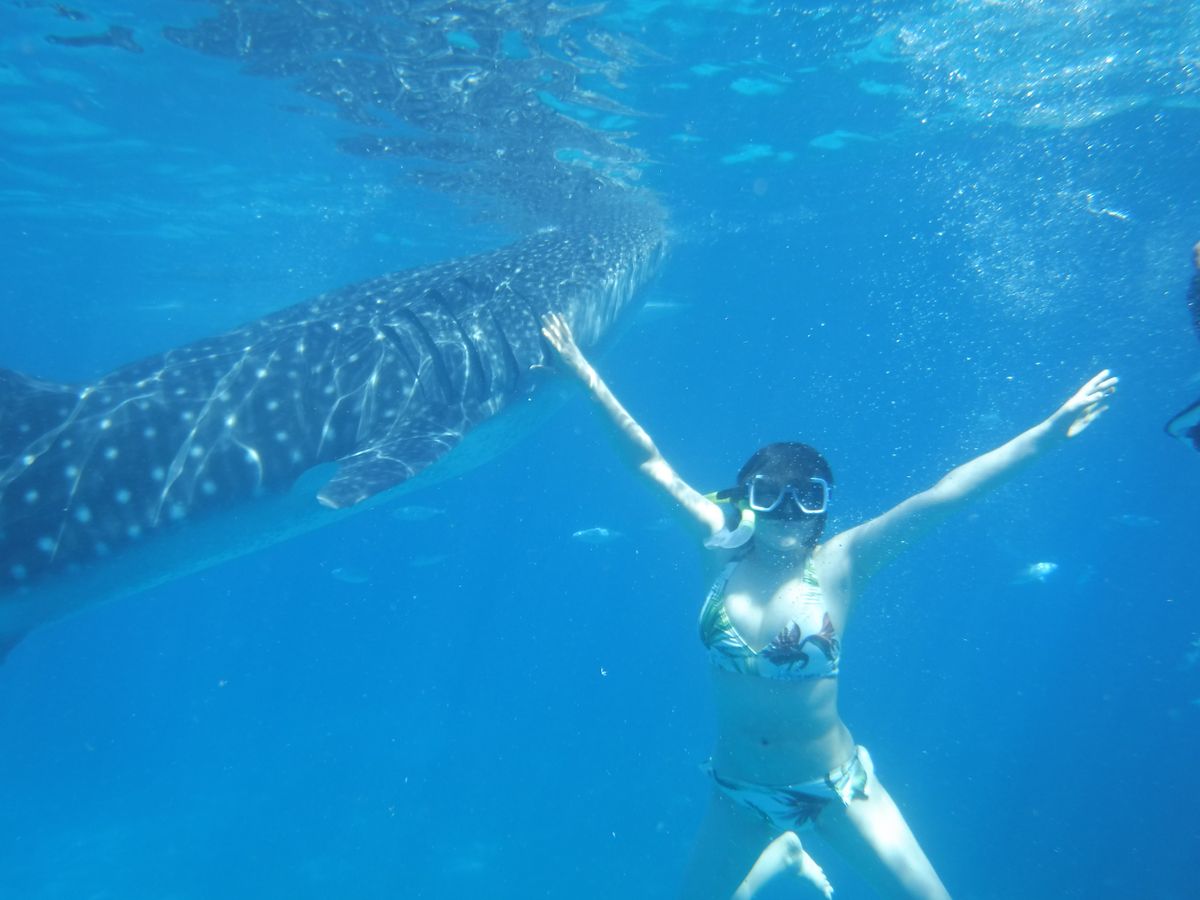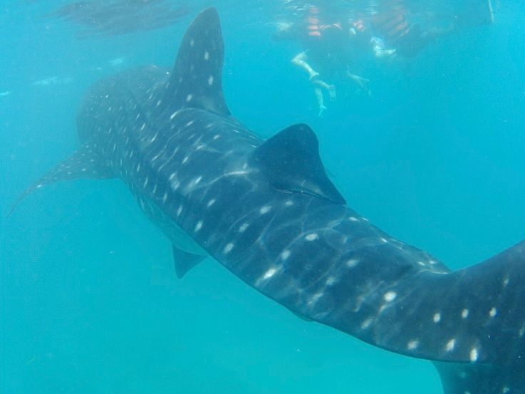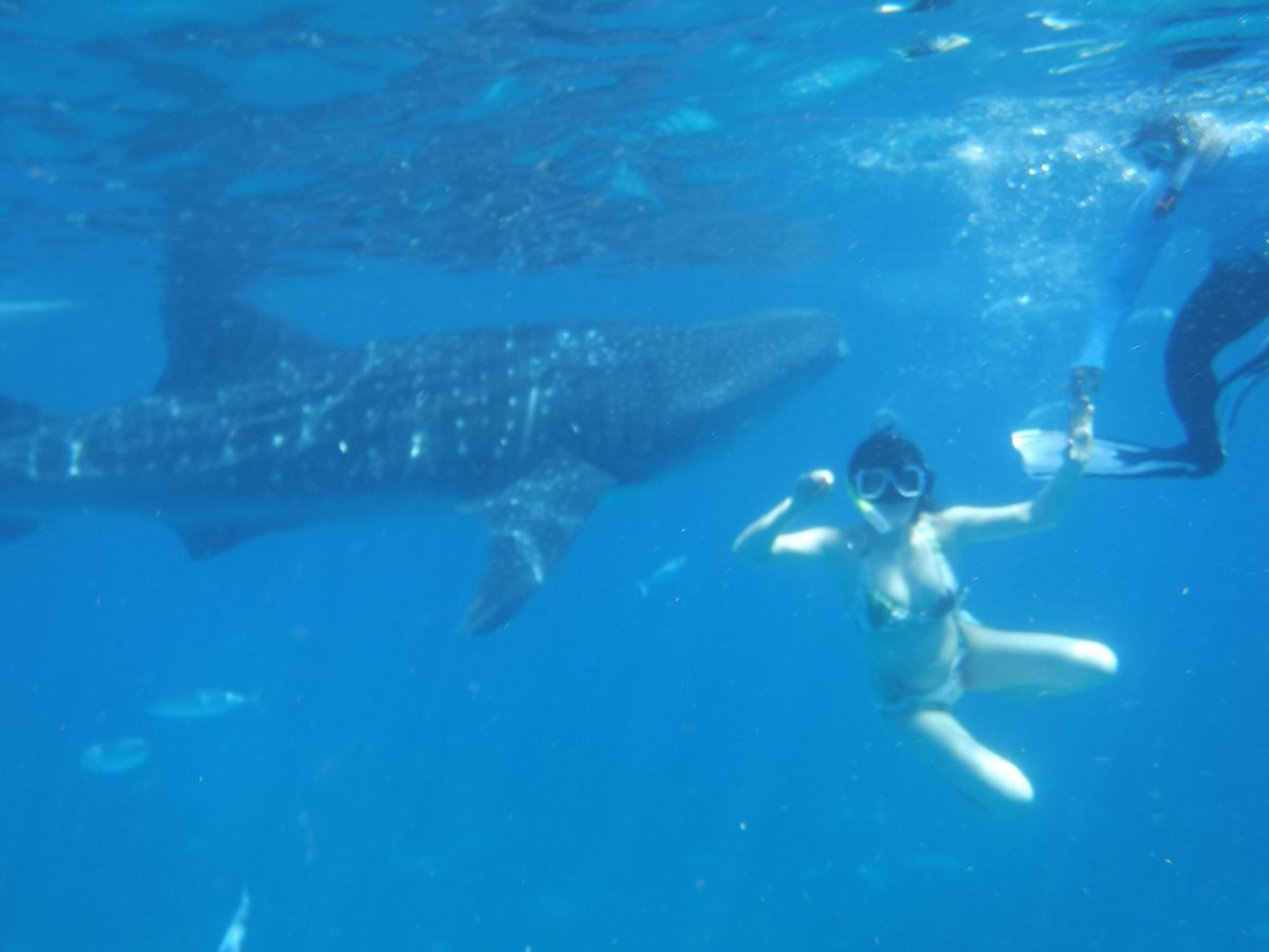 朝の出発がとても早かったですが、そのおかげで車の中ではたくさん眠れたので辛くは感じませんでした。途中マクドナルドによっていただき朝ごはんも食べれました。片道3時間ほどでオスロブに着きました。着くとすぐに説明が始まりライフジャケットを着て船に乗りました。船から降りて海に潜るとたくさんのジンベエザメと魚がいました。海はとても深いですがライフジャケットで浮きますし、船に捕まる所があるので泳ぎが不安な方でも問題ありません。ジンベエザメは触れるくらい近くまで寄ってきます。たくさん写真も撮れるのでカメラは持ってくことをおすすめします。私はiPhoneを防水ケースに入れて持って行きました。