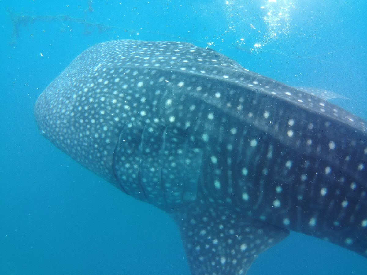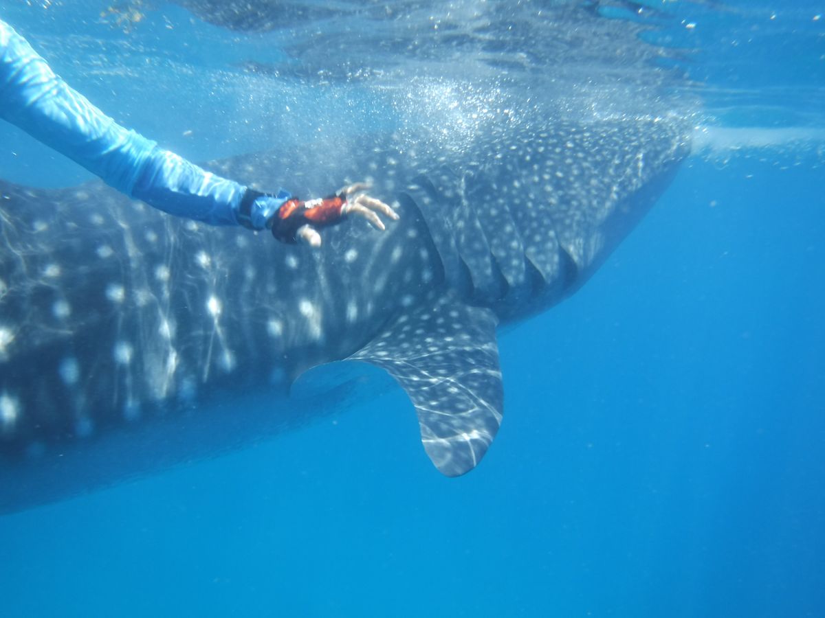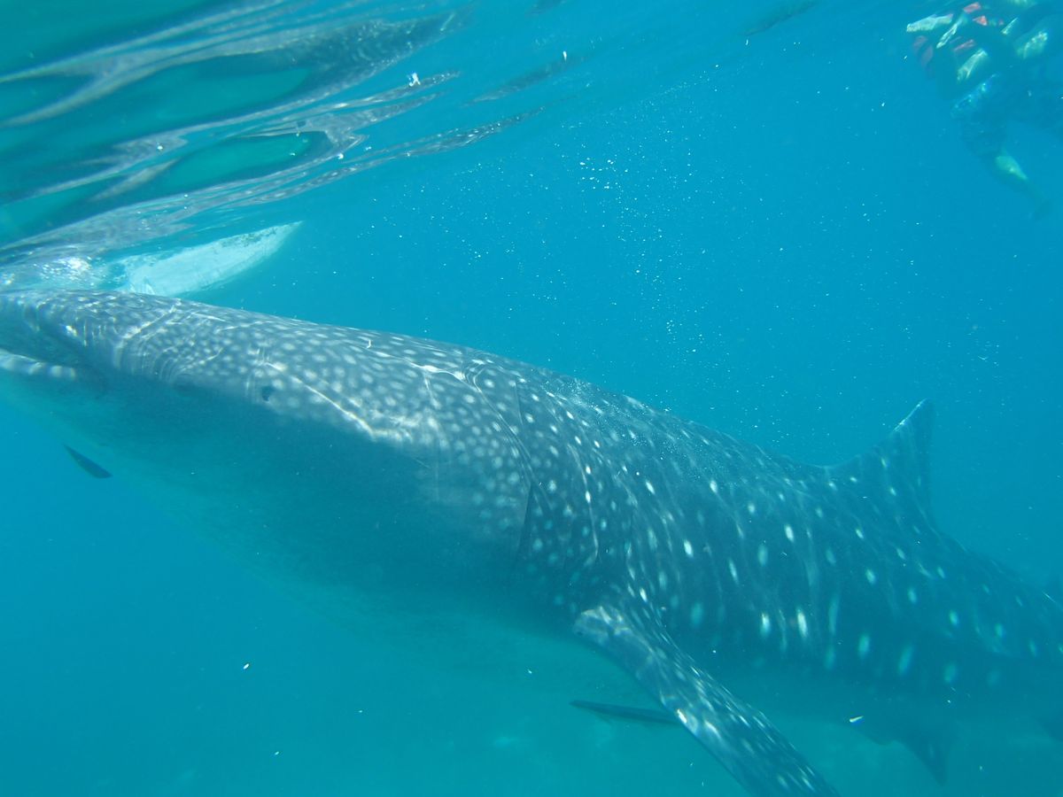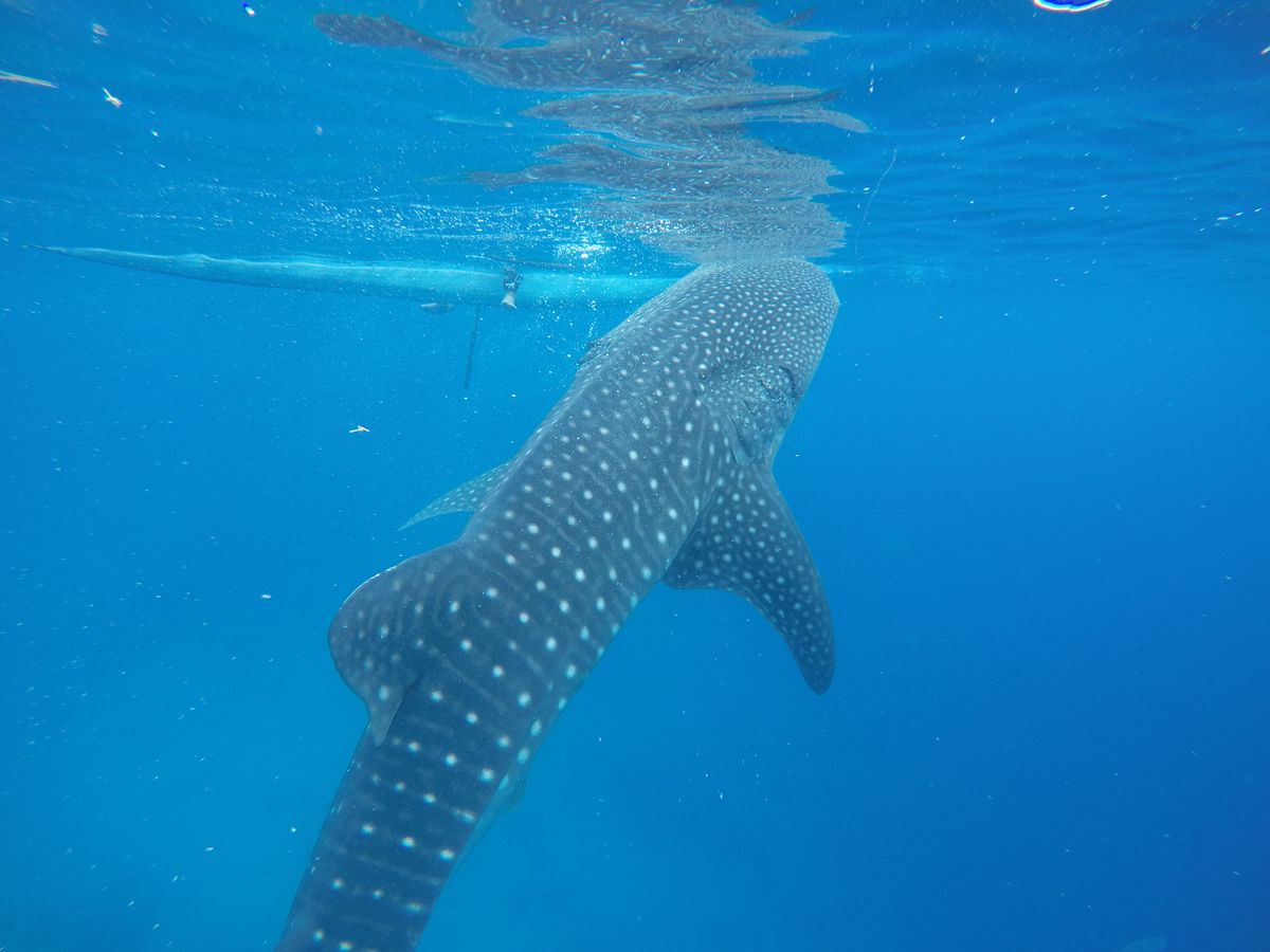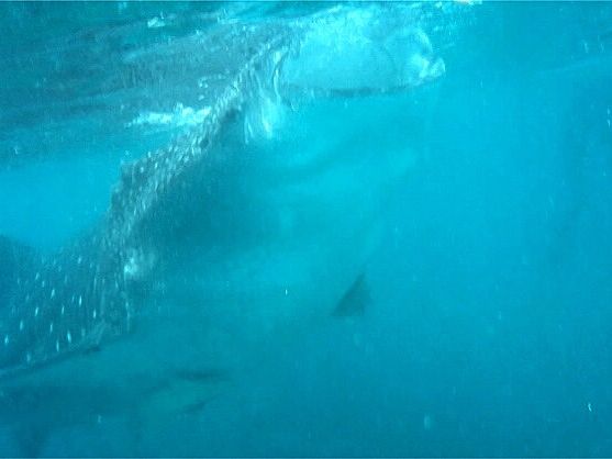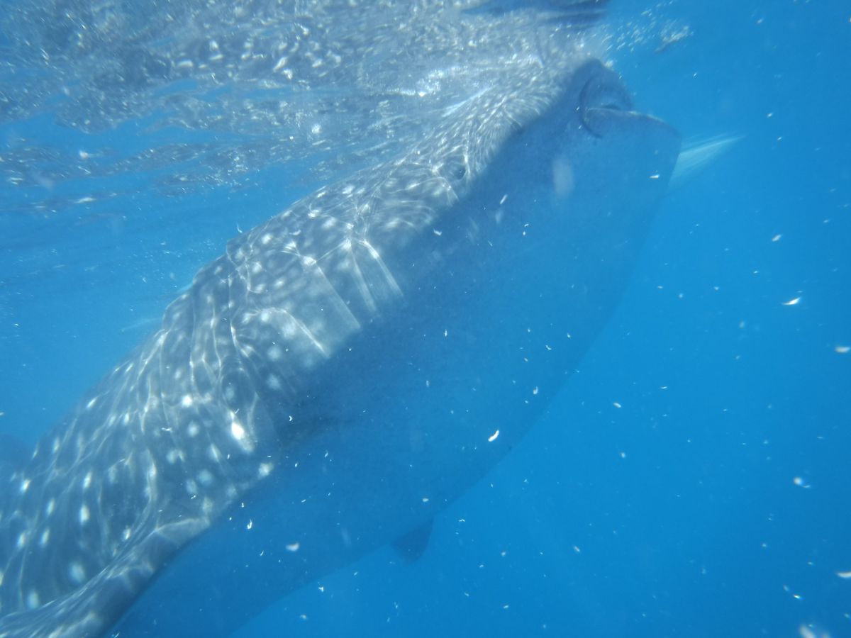 往復の時間はかなりかかりましたが、その腰の痛みを忘れるくらいの近さでジンベイザメを見ることができました。