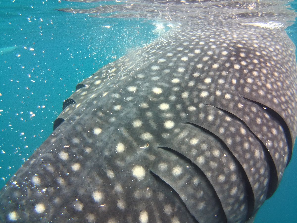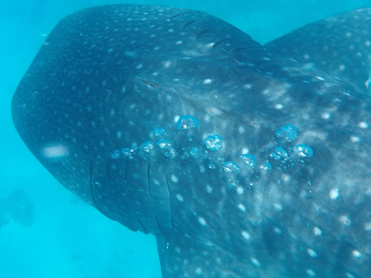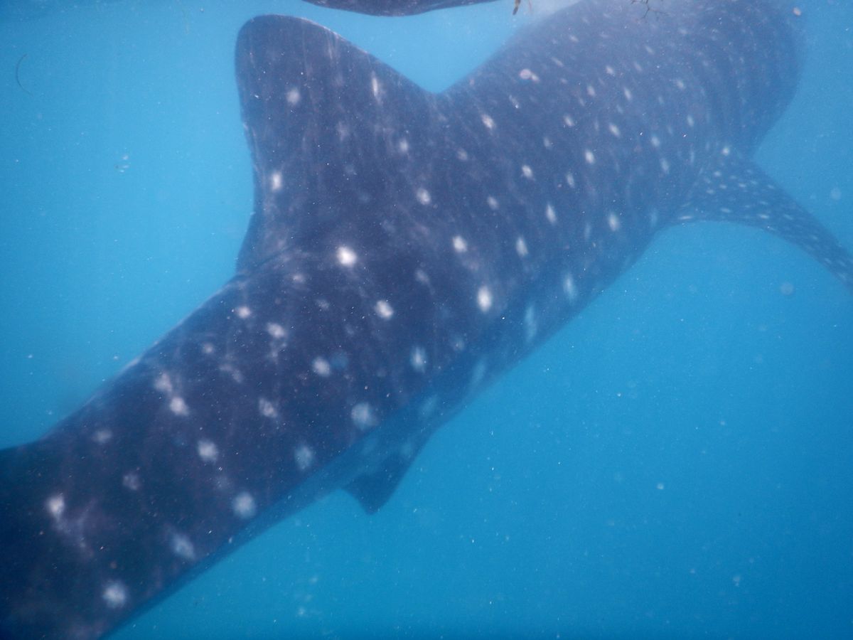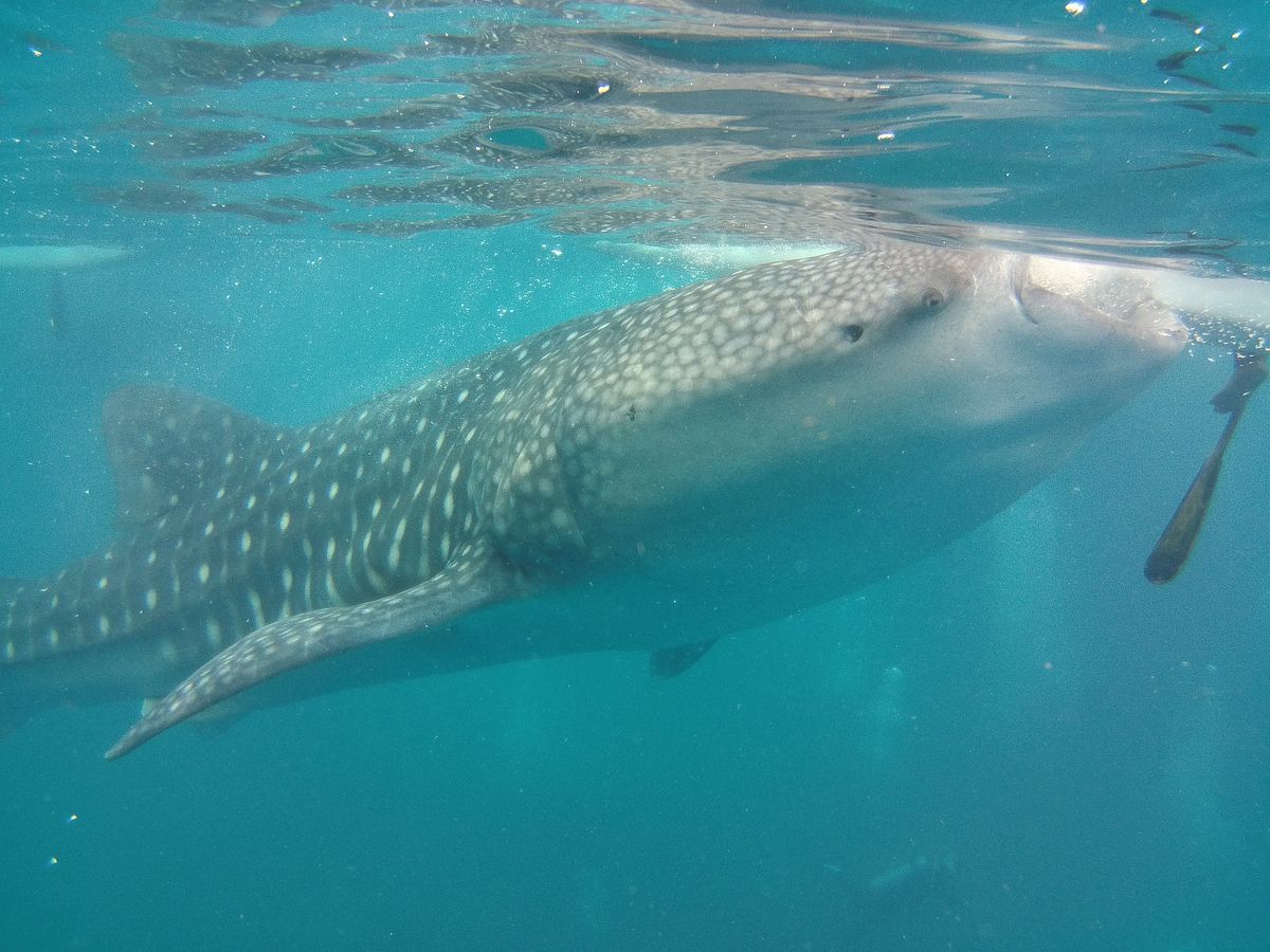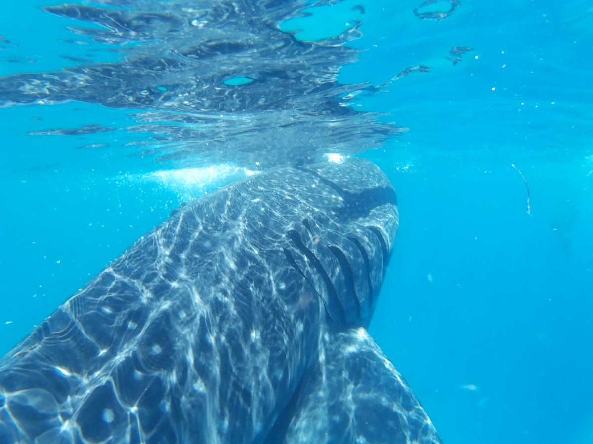 往復の時間はかなりかかりましたが、その腰の痛みを忘れるくらいの近さでジンベイザメを見ることができました。