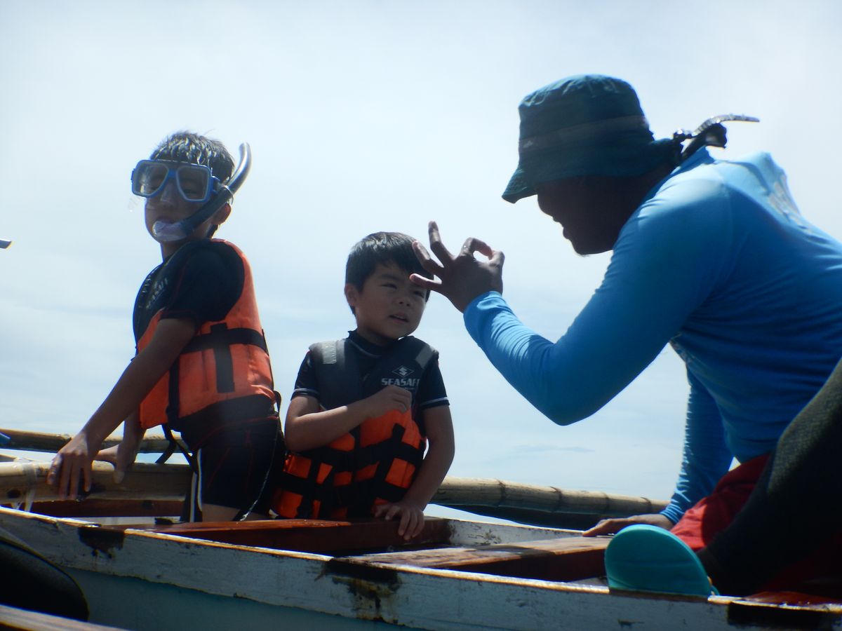 オスロブ島に着いたら、ジンベイザメとシュノーケルについて説明を聞き、船に乗ってジンベイザメのところまで行きました。