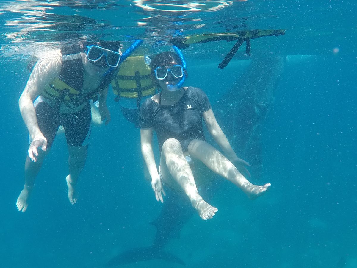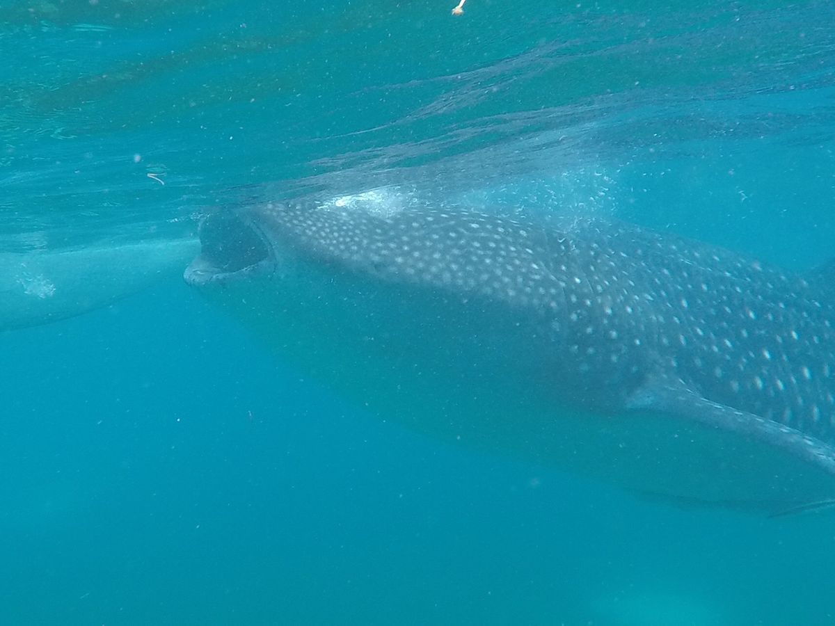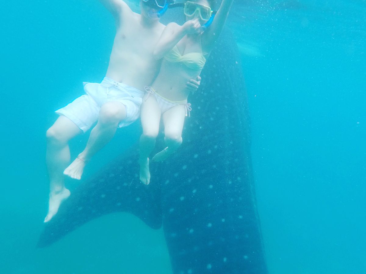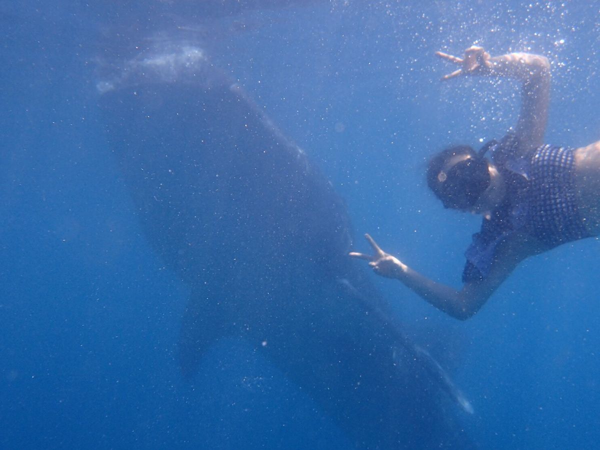 二度目となる彼氏との海外旅行でセブ島に行くことに。友人がジンベエザメのツアーに参加していたので、いや、ら怖くない?って思いながらも予約して行ってきました!お値段も普通のツアーと違って少し高めでなんせ片道4時間近くとのこと。ピックアップ時間は朝の5:30、、(笑)でもぴったりの時間でガイドさんが来てくれました。朝から元気いっぱいに出発!車内ではジンベエザメのことや注意事項など丁寧に教えてくださいました。途中、コンビニに寄ってくださりトイレやお水を買ったりリフレッシュ(^_^)乗り物酔いしがちですが酔い止めを飲んでいたので大丈夫でした。このツアーに参加する方は絶対に酔い止めを飲んだほうがいいです!(笑)片道4時間は意外とあっという間で到着!色々説明を受けライフジャケット、シュノーケルを受け取り小型の船に乗船。因みに私たちは自前のgoproがあったのですが持ち込むだけでも350ペソ?程必要です。ですが!たーくさん写真や動画を現地の人たちが撮ってくれるので全然安いですよ!ジンベエザメは本当にでかくて最初はビビリまくり!でもきっとここでしか見られないんだと思い何度も潜ってツーショットにリベンジしました(笑)大きい上に沢山のジンベエザメがいるので本来はこっちから触ってはいけませんが向こうから触れてくる程の近さでした(°▽°)!!水族館でもあまり見られないジンベエザメとのツーショット、一緒に泳げたのは本当に宝物になりました!!時間とお金惜しくないです本当(笑)ぜひ行って見てください!