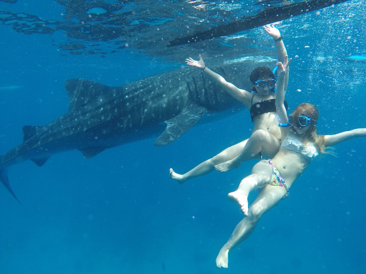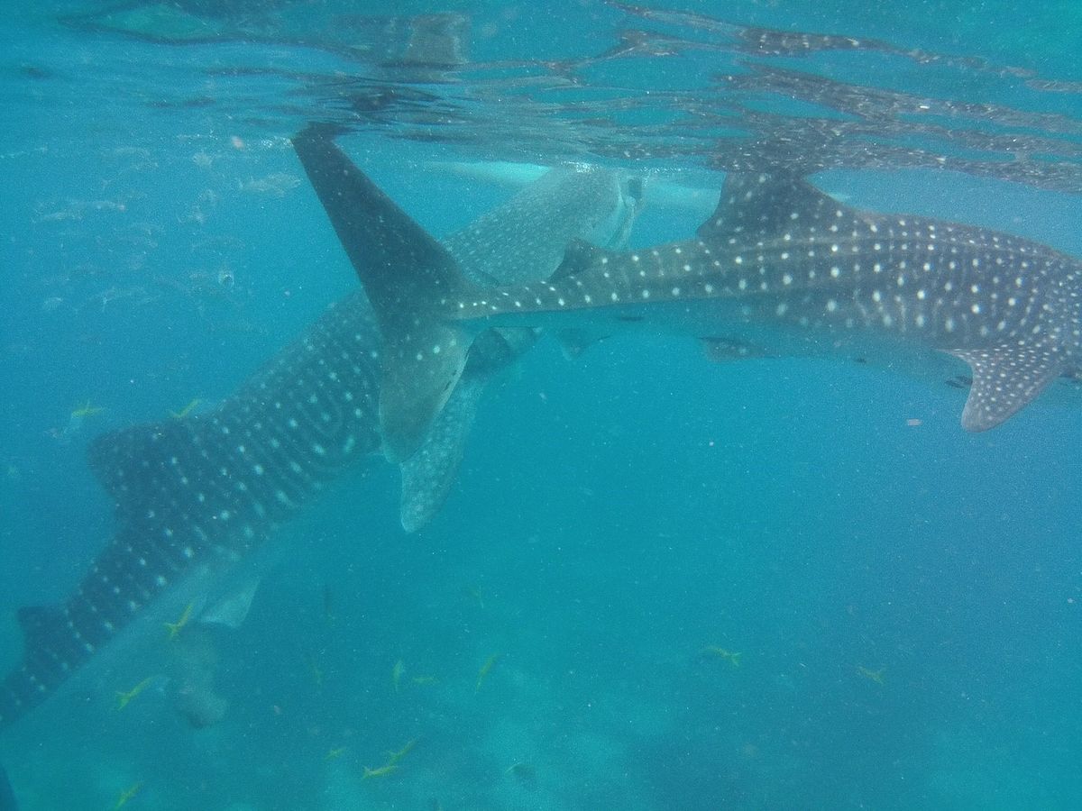 私たちのボートから2頭のジンメイザメが一緒に泳いでくれました