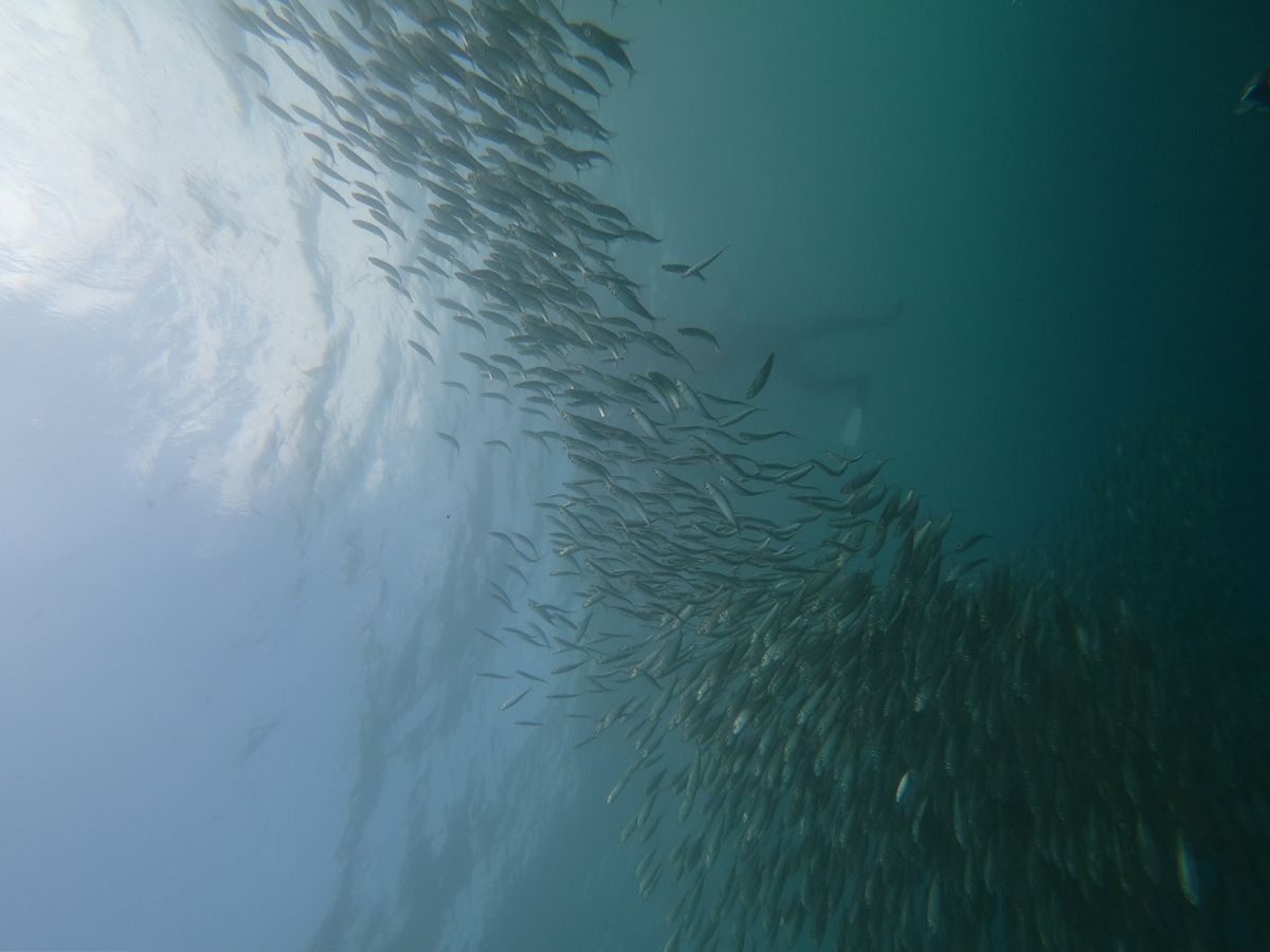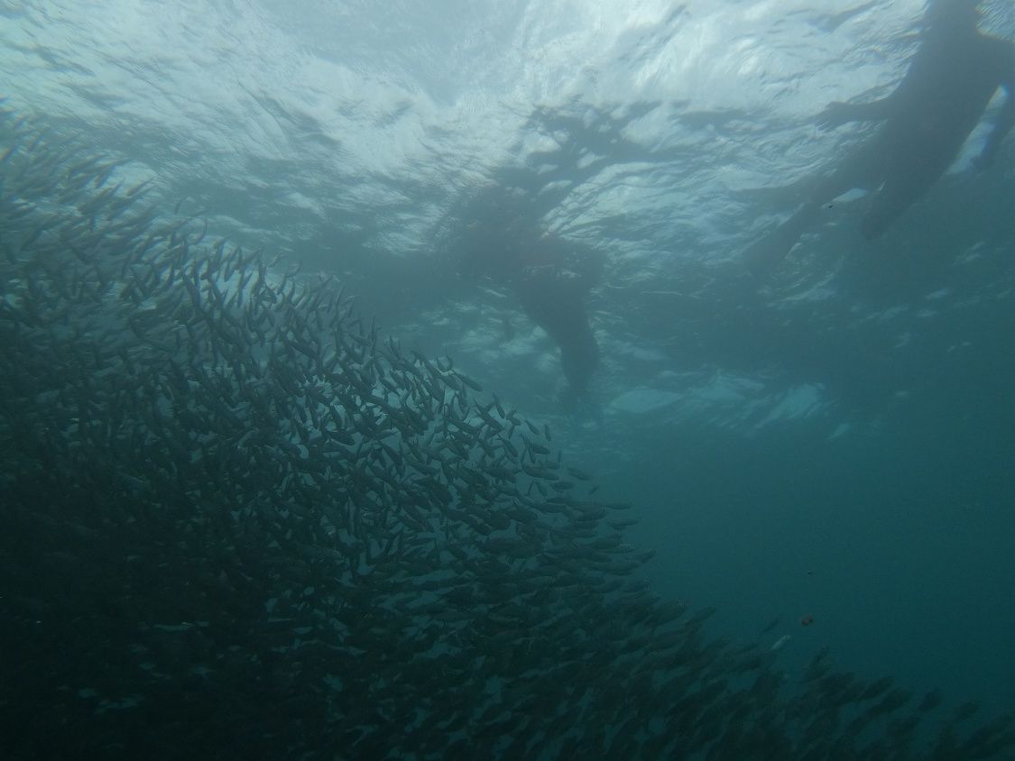 潜ったところにいるかと思いきやかなり海面付近を泳いでるのはびっくりでした。2本目のダイブは船に乗ってスミロン島付近へ。このスポットは小魚中心ですが小さいサメも見ることができました。浅瀬に囲まれているこの島にも上陸できました。