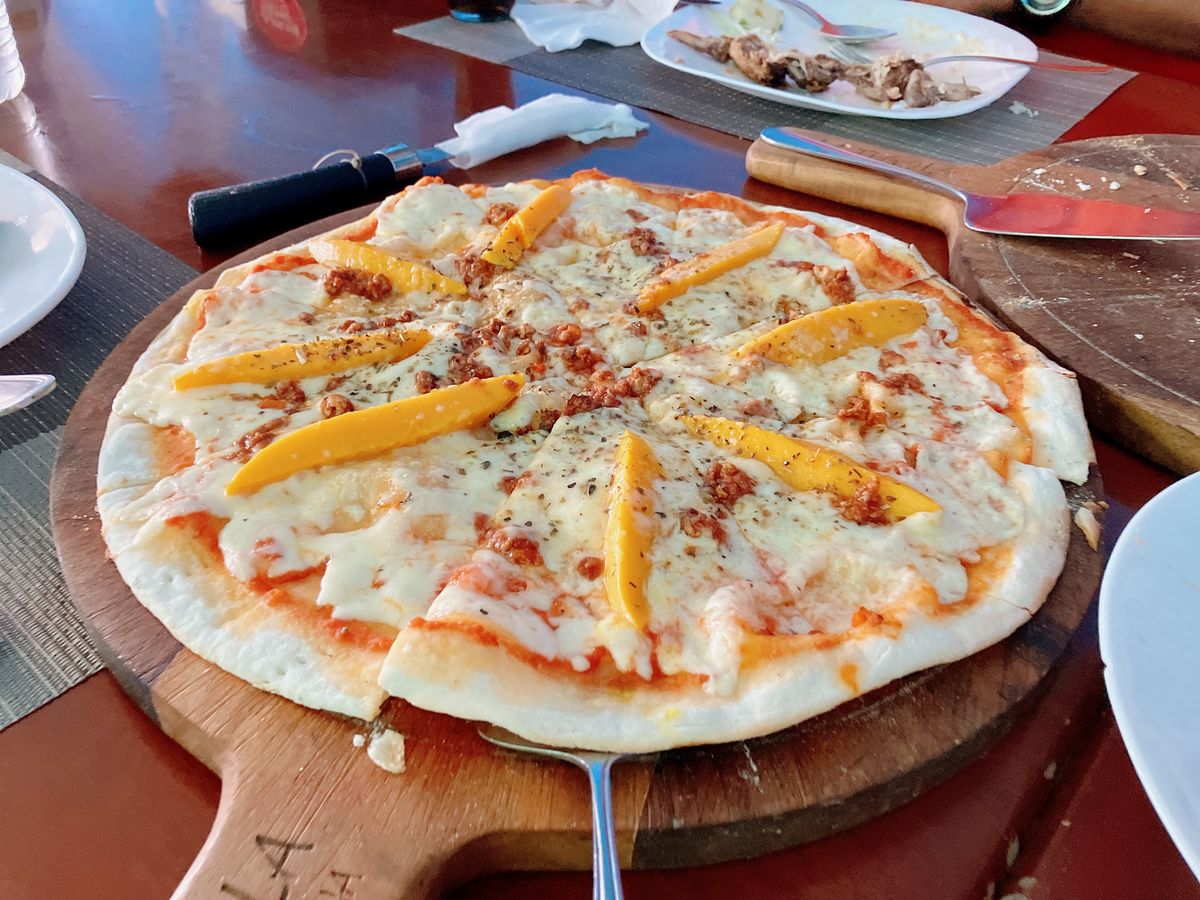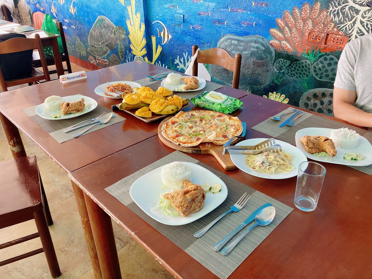 ジンベイザメと泳いだあと、1時間ほど行ったところにあるイタリアンレストランでピザとパスタを食べました。高台にあり海が一望できるレストランで、ビールを飲み最高の気分になれました!