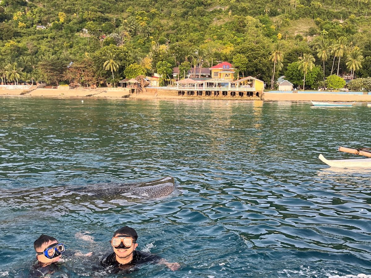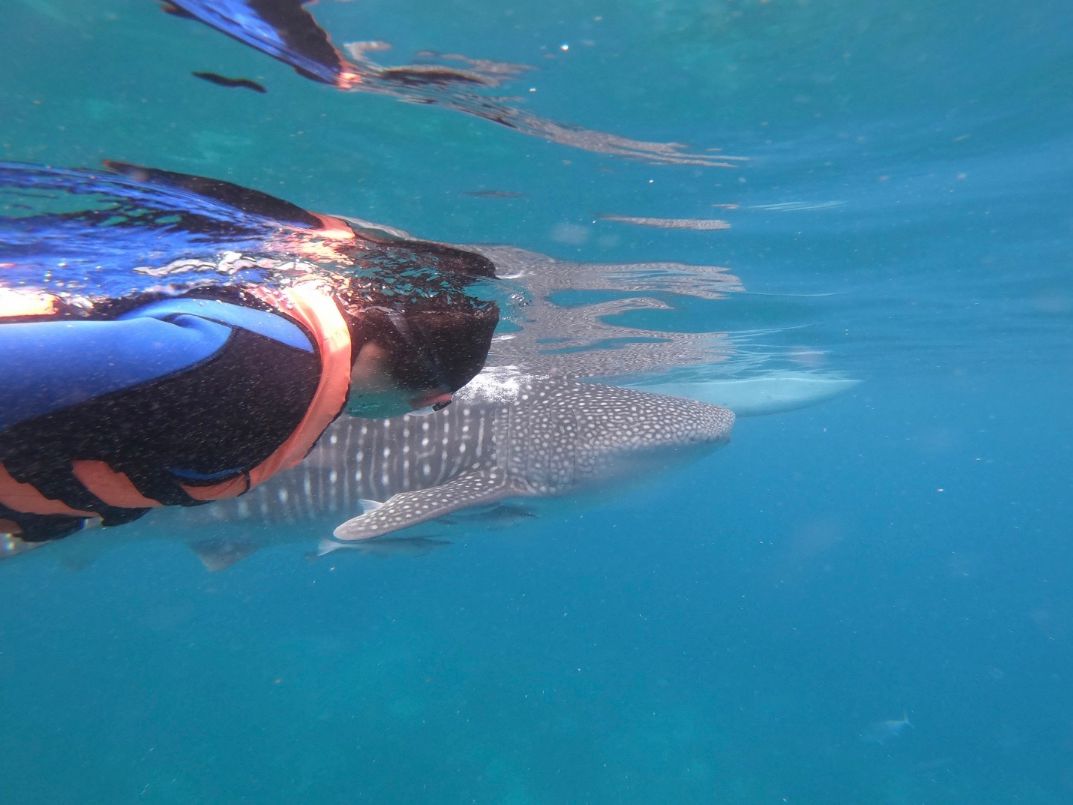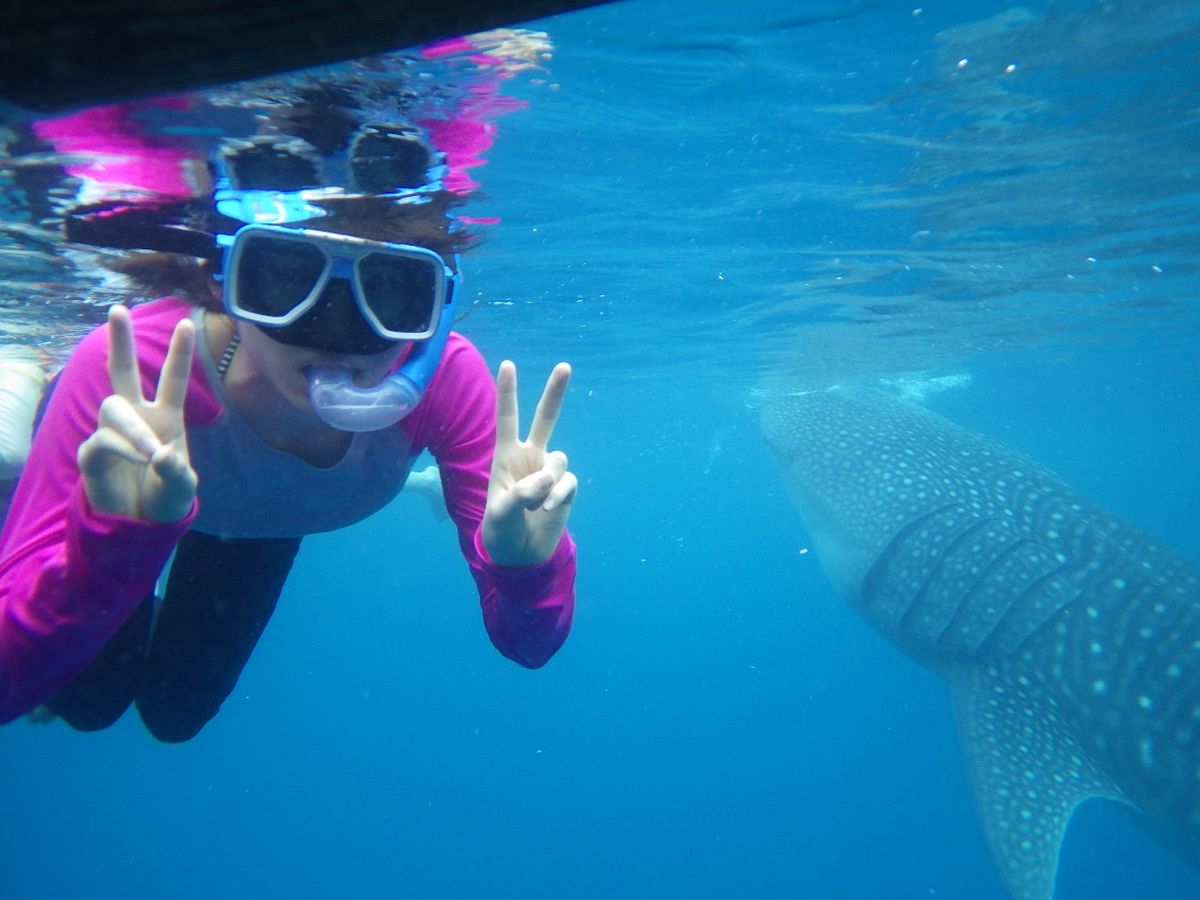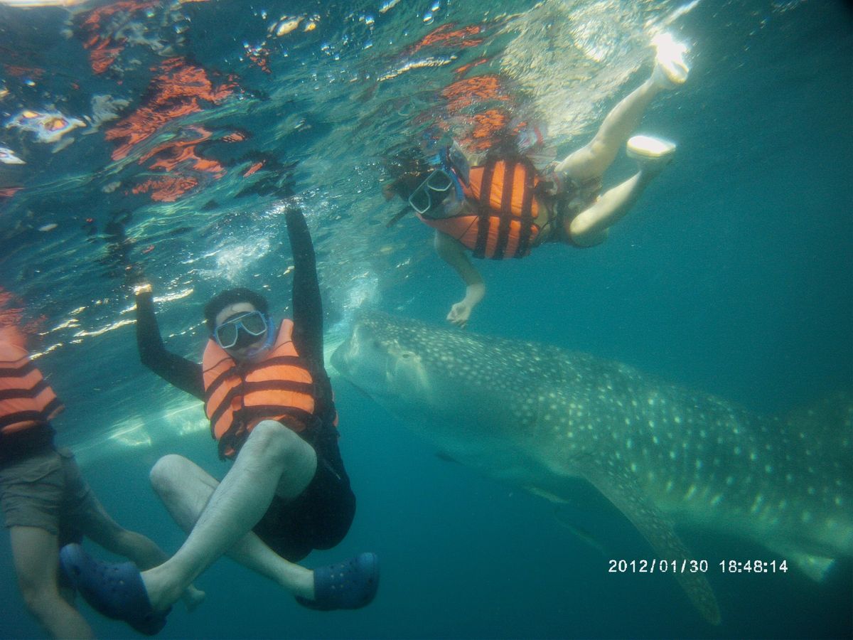 海洋生物が好きな娘のたっての願いで、ジンベイザメツアーに申し込みました。当日は、3時集合ということで眠い目をこすり出発しましたが、結局車の中で爆睡。なので到着後は元気いっぱいでした!受理番号を取り、説明を聞いたら、さあボートに!ということで、結構忙しく乗り込みました。すこし行ったところで海にざぶん!ボートから離れてはいけないという制限はありましたが、次から次へとジンベイザメがやってきて、瞳やエラまでくっきり見ることが出来ました。なによりガイドのソロムさんが親切でとてもいい人!何から何まで面倒をみてくれ、彼のおかげで安心でき、楽しいひとときとなりました!帰りはアヤラで降ろしてもらい、帰りのタクシーのことまで親切に教えてくださいました。感謝です!