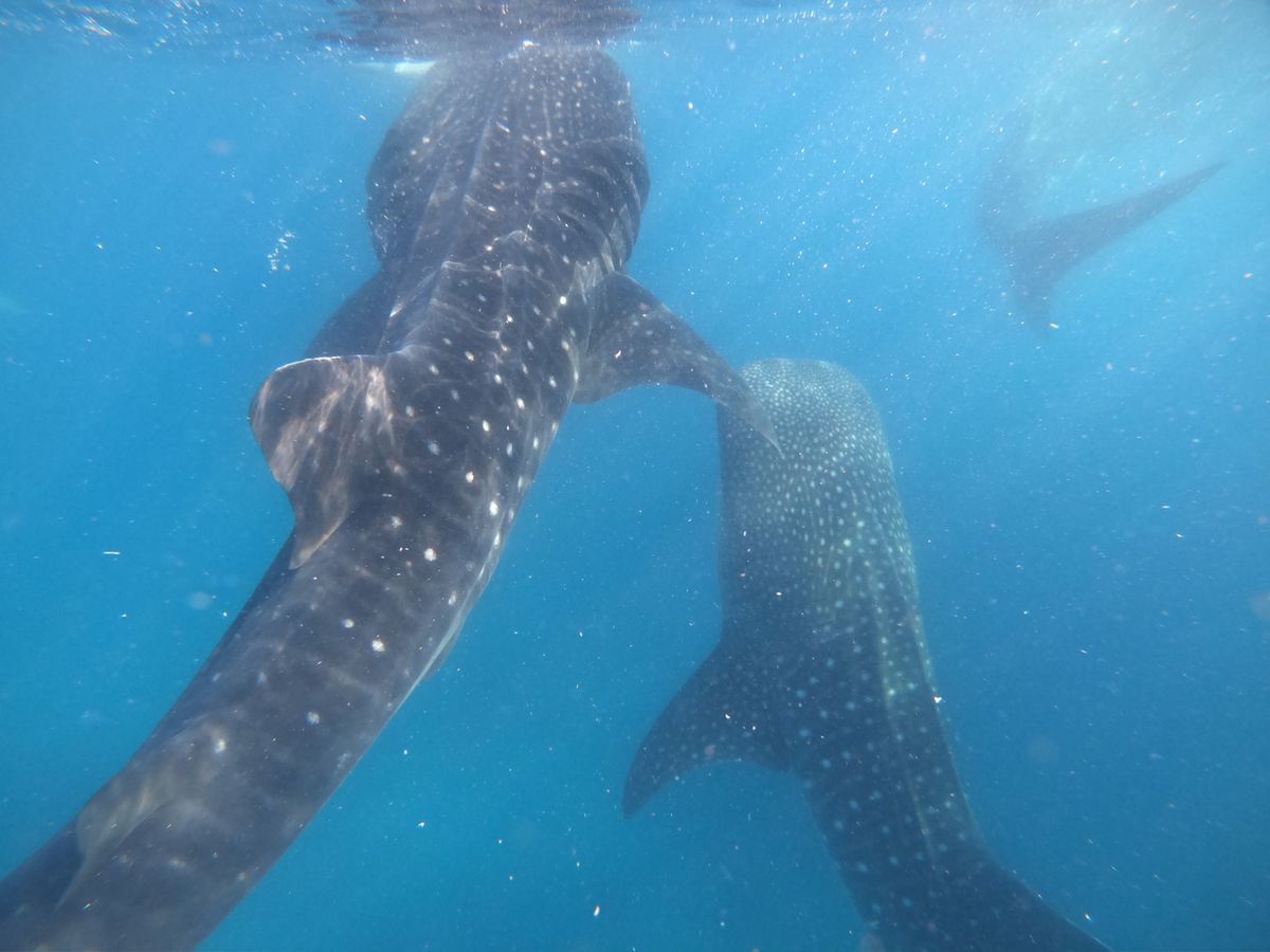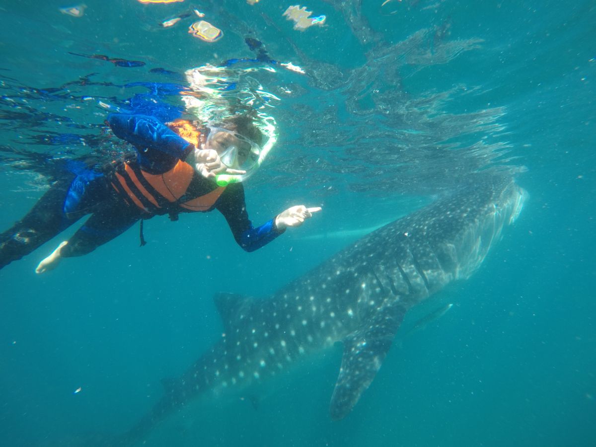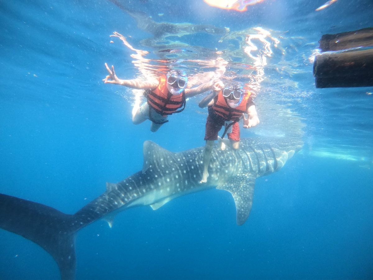 海洋生物が好きな娘のたっての願いで、ジンベイザメツアーに申し込みました。当日は、3時集合ということで眠い目をこすり出発しましたが、結局車の中で爆睡。なので到着後は元気いっぱいでした!受理番号を取り、説明を聞いたら、さあボートに!ということで、結構忙しく乗り込みました。すこし行ったところで海にざぶん!ボートから離れてはいけないという制限はありましたが、次から次へとジンベイザメがやってきて、瞳やエラまでくっきり見ることが出来ました。なによりガイドのソロムさんが親切でとてもいい人!何から何まで面倒をみてくれ、彼のおかげで安心でき、楽しいひとときとなりました!帰りはアヤラで降ろしてもらい、帰りのタクシーのことまで親切に教えてくださいました。感謝です!