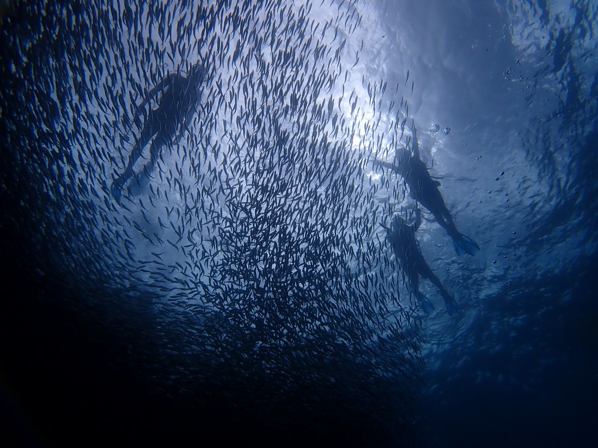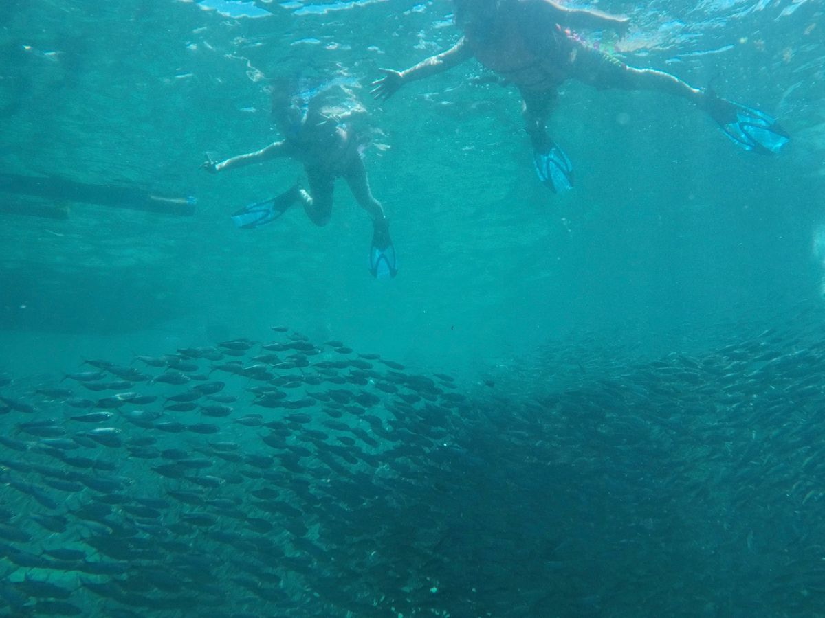 イワシのトルネードは、深いところをイメージしていましたが、思っていたより浅いところで見れたので、楽でした。
