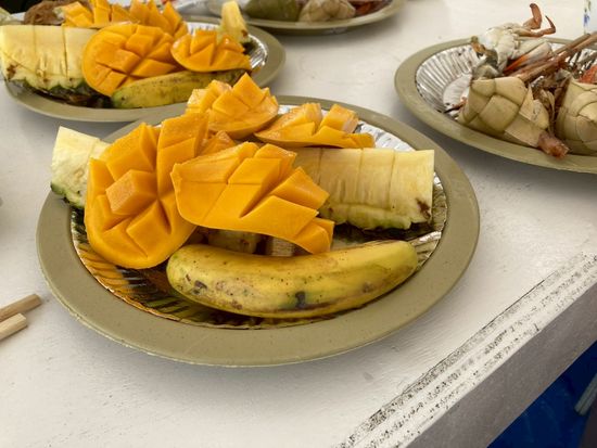ランチは船上で出来上がった状態のBBQ料理とたくさんの果物を食べました。私たちは一気に食べることができなかったので、ソルパ島の自由時間で食べてもいいか確認して、ソルパ島で果物を食べました。