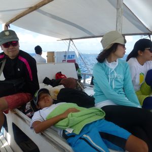 船で沖まで行き、ダイビング&シュノーケルをしました。