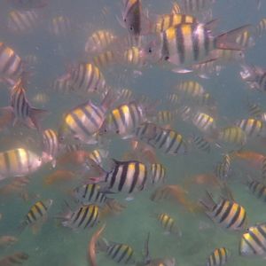 今回初めてビーチの旅で、念願のダイビング体験をさせていただきました。船はそんな揺れることもなく酔わずにすみました。ダイビングスポットに到着してお待ちかねのダイビング!現地スタッフの方がリードしてくれて海の中の景色を楽しませてくれました。バブルリング面白かったです!パンダノン島に到着後はのんびり過ごせて良かったです。時間の流れがゆっくりで日常を忘れることが出来ました。島で食べたお昼ご飯も美味しくいただきました。お肉をカリカリに焼いてくれてたのが私好みでありがたかったです。南国フルーツもとても美味しかったです!天気は曇りでしたが、日差しが強くなく逆に良かったかもしれません。優しいスタッフさんのおかげでのんびりとした一日を過ごすことが出来ました。ありがとうございました!!