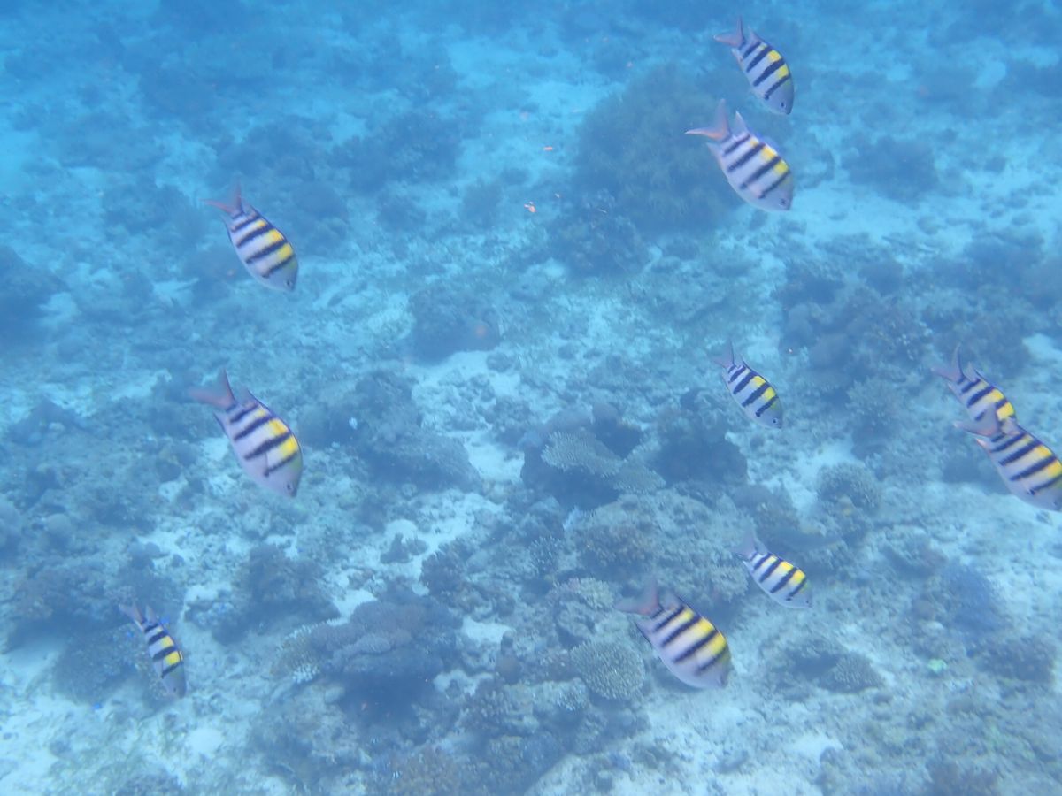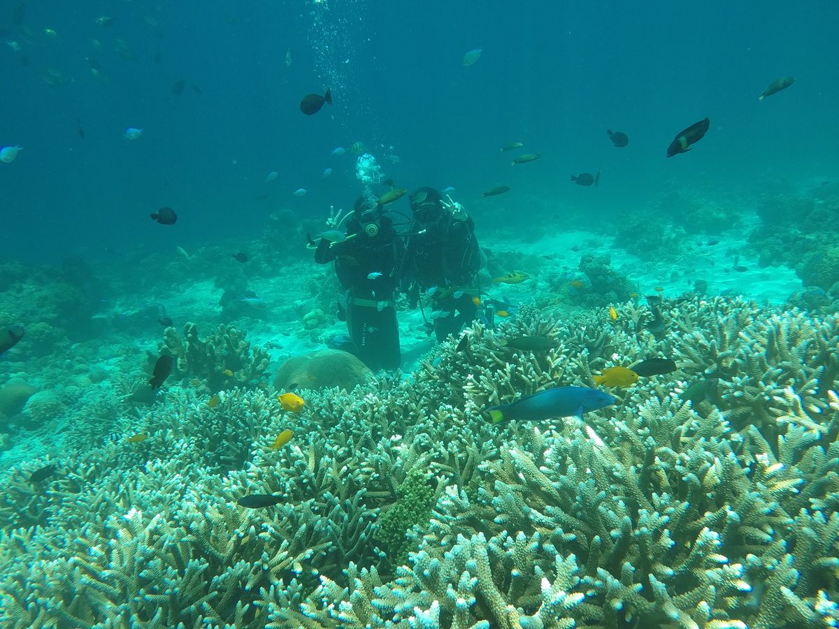 体験ダイビングは先に船の上で日本人スタッフから説明を聞いてから現地スタッフと一緒に海に入り、練習込みで約20分。残念ながら潮の影響なのかあまり透明感はなかったです。魚はたくさんいましたがカラフルな感じではなく、ニモも会えませんでした。