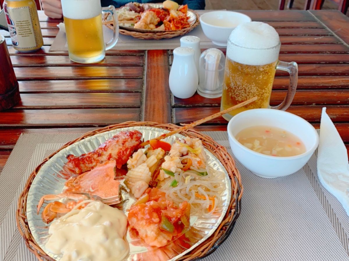 ●海上レストランは13時過ぎにもなるとスタッフが片付けムード。品切れの料理もありました。ちなみにトマトソース風のパスタは超々甘いです(^-^;