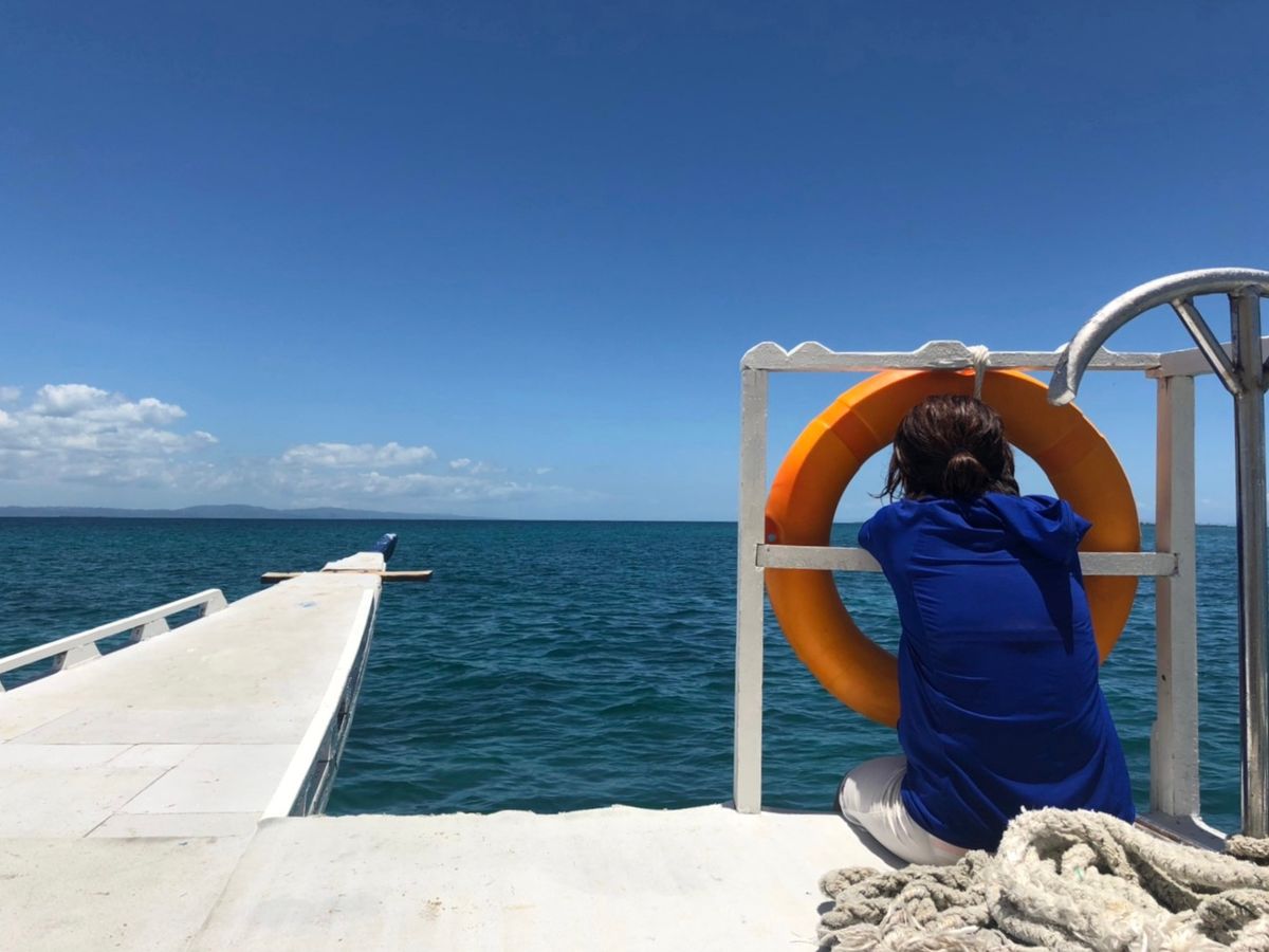 そこでは唯一の船からの飛び込みができます。私は怖くて直立ダイブでしたが、他の人は前宙ダイブや後ろ向きダイブなど、色々な方法でダイブをして楽しんでいました。1時間くらいはいたと思います。そして次の島まで約50分かけて船を出発。その間、船頭に座って日向ぼっこをしていました!ここで現地のガイドさんとたくさんお話や写真撮影ができて、待ち時間ながらも楽しかったです!