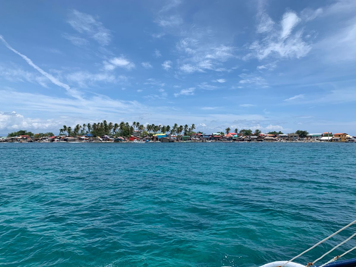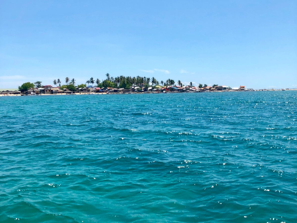 そうこうしているうちに14:30。船で約1時間かけて戻ります。ある程度陸に近づくと小さな船に乗り込み、沖までいきます。ただ、この日は潮の引きが早く、500メートルほど海を歩いて沖まで行きました。水は15センチ程だったのでそこまで辛くはなかったですが、私は安物のビーチサンダルをはいていたので壊れてしまいました、、、。笑 不安な方はビーチサンダルの他にカカトまであるサンダルを用意されることをお勧めします。