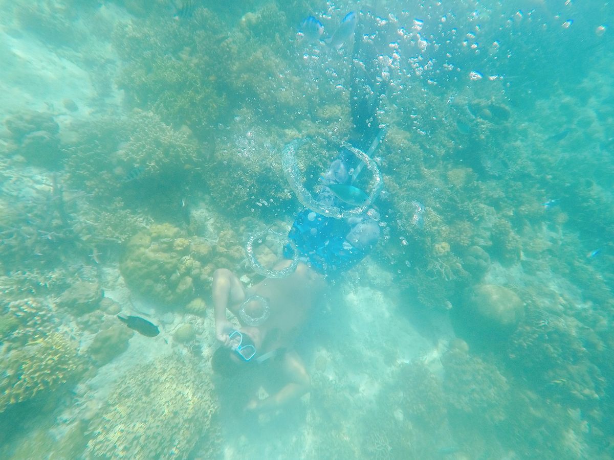 船から何度も飛び込んだり、バブルリングの練習をしたり…。海の中で凄く綺麗で、日頃の仕事の疲れが吹っ飛びました。