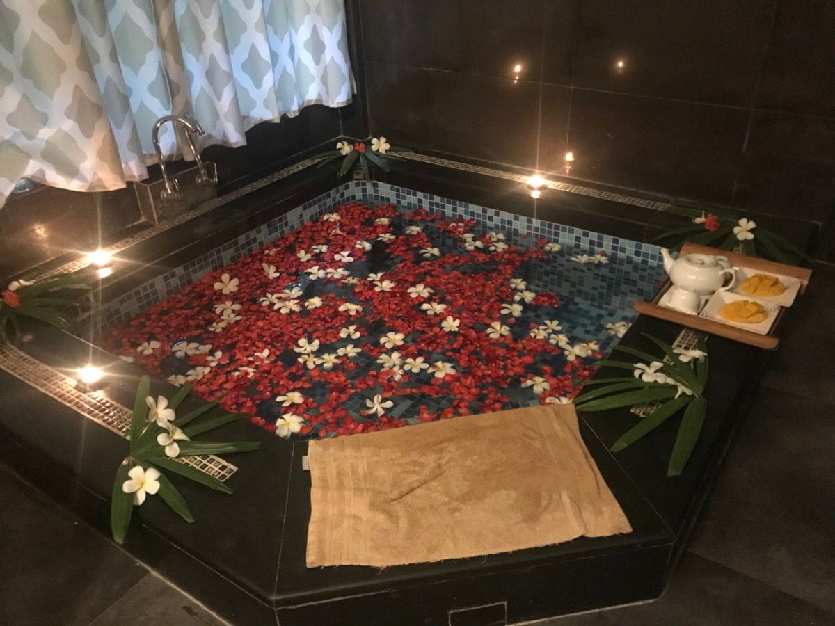 その後着替えを済ましたら、事前の希望通りの素敵なカップルルームに案内頂き、丁寧なカウンセリングに始まって、憧れだったフラワーバス体験(こちらの写真が撮れず残念)や、美味しいフレッシュマンゴーのサービス、そしてもちろん本題のストーンマッサージも小柄な女性スタッフさんにも関わらず非常に力強くかつ上手で、肩を中心にやってほしいというオーダーにも応えてくださり、期待以上の至福の時間を過ごすことが出来ました。