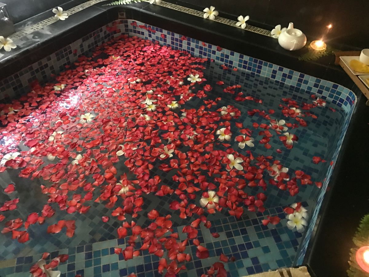 その後フラワーバス(中で浸かりながら用のマンゴーとお茶が準備されてました)