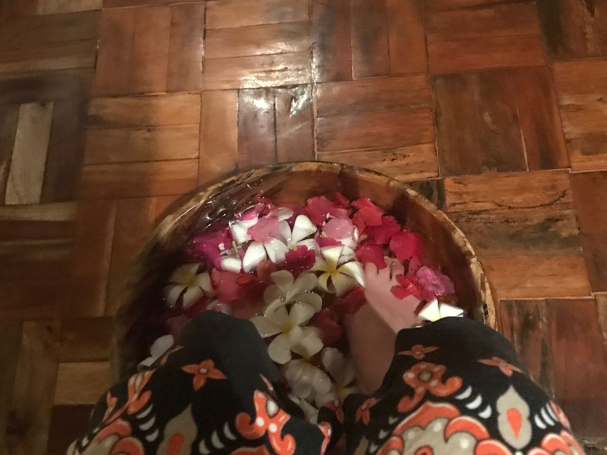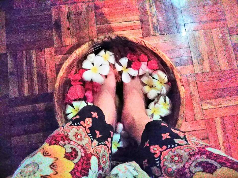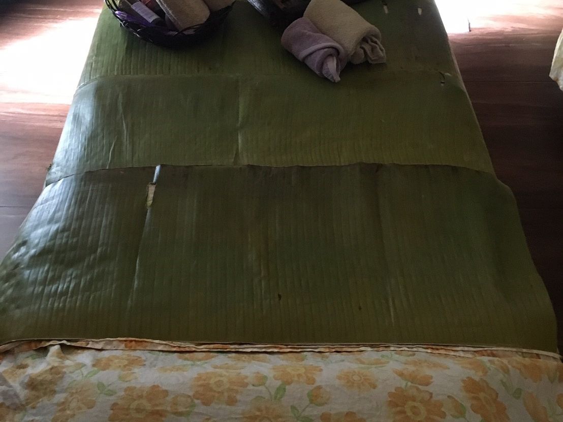 フットバス、フットマッサージ、ボディスクラブ(かなり粗めのスクラブでした)をしてもらい、パパイヤのボディパックの時にバナナの葉っぱにくるまれたのが楽しかったです!