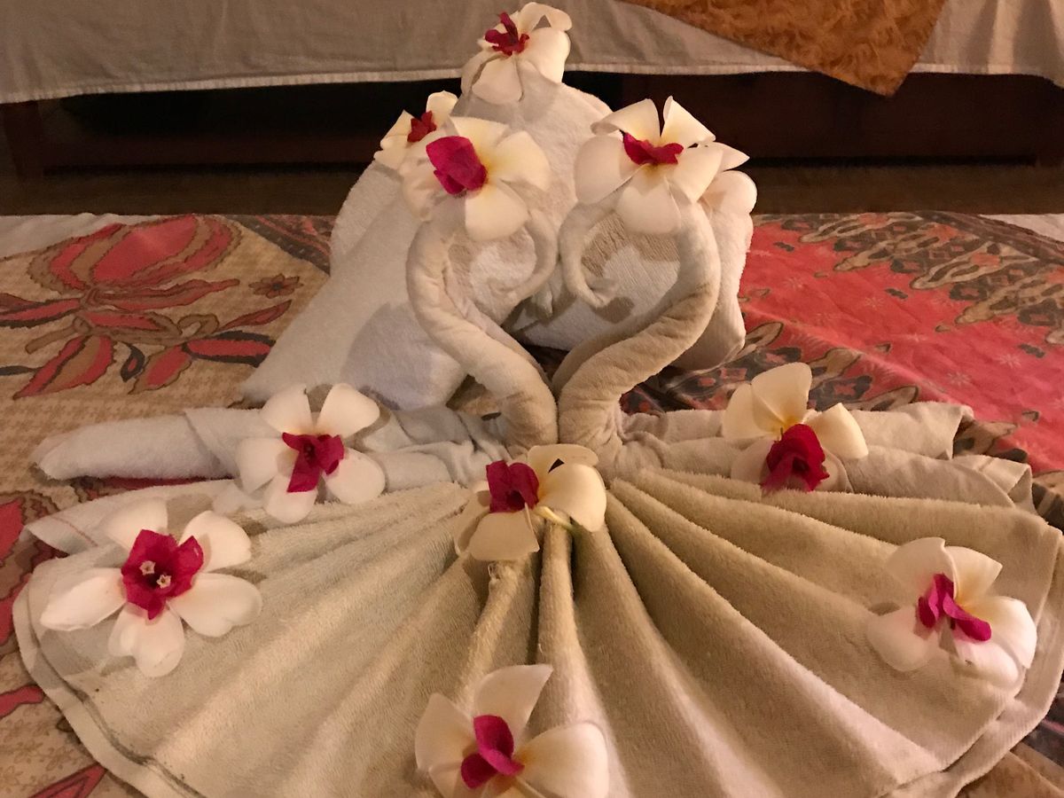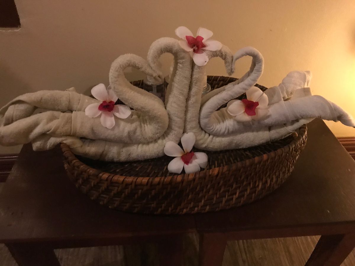 ベッド上のタオルや花の飾りなど見事でした。