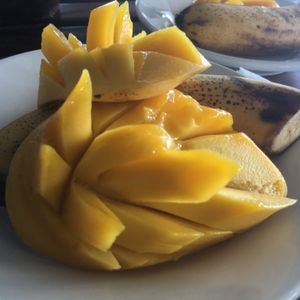 レストランは人が多いですが、景色がかなり良くとても満足でした。葉っぱのお皿も気分が上がります。