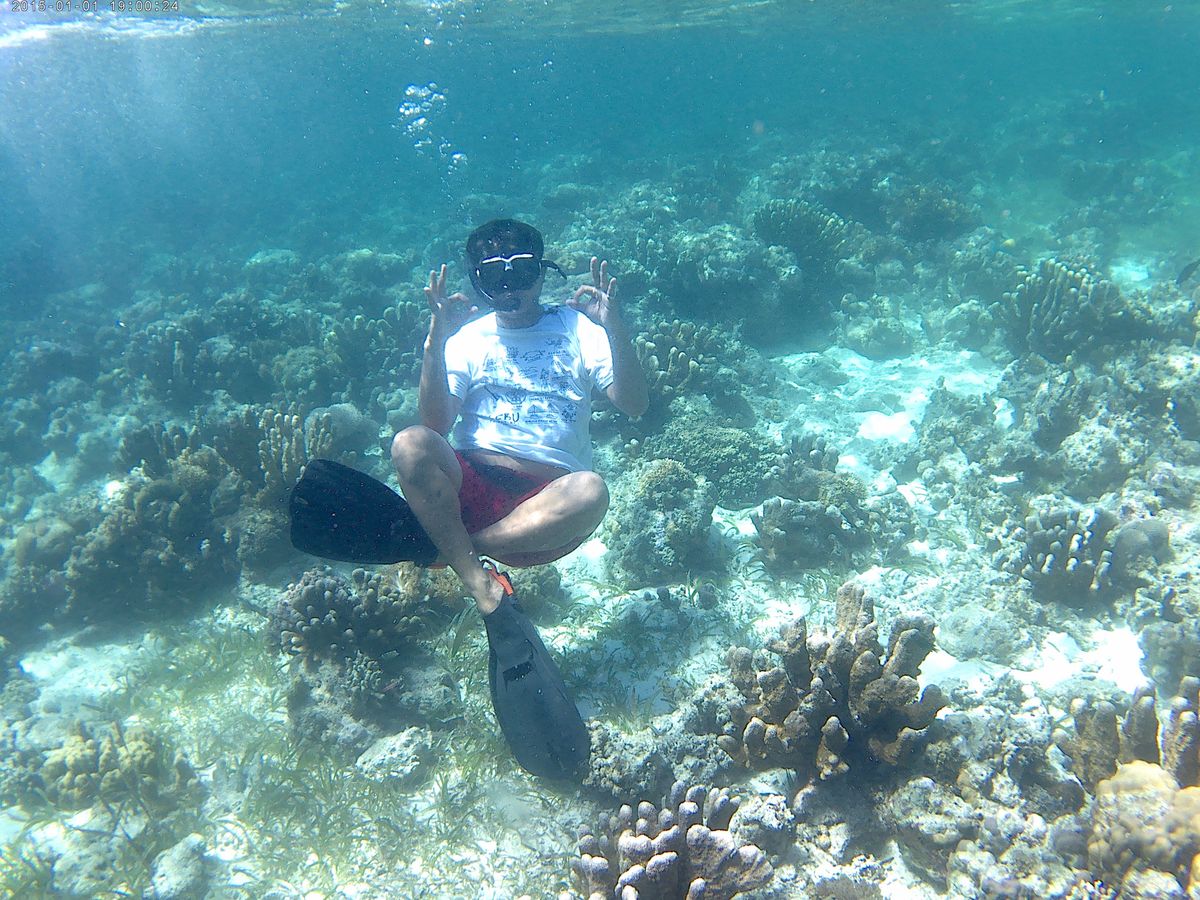 釣りが終わると次はシュノーケルです。海洋保護区のすぐ近くまで船で行き、ポイントまで泳ぐともの凄い数の魚がサンゴ礁の周りを泳いでいました!!何百種類いるんだろうって感じでした笑笑