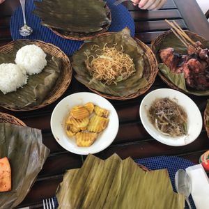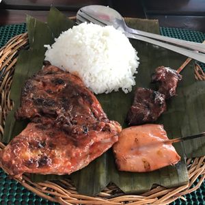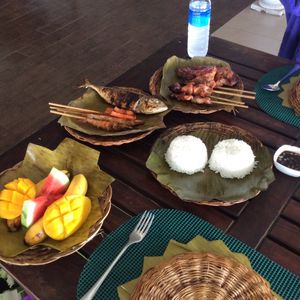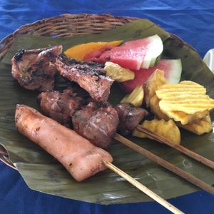 昼食はフィリピンスタイルのBBQになります。串に刺さった魚やお肉、チキンもあります。