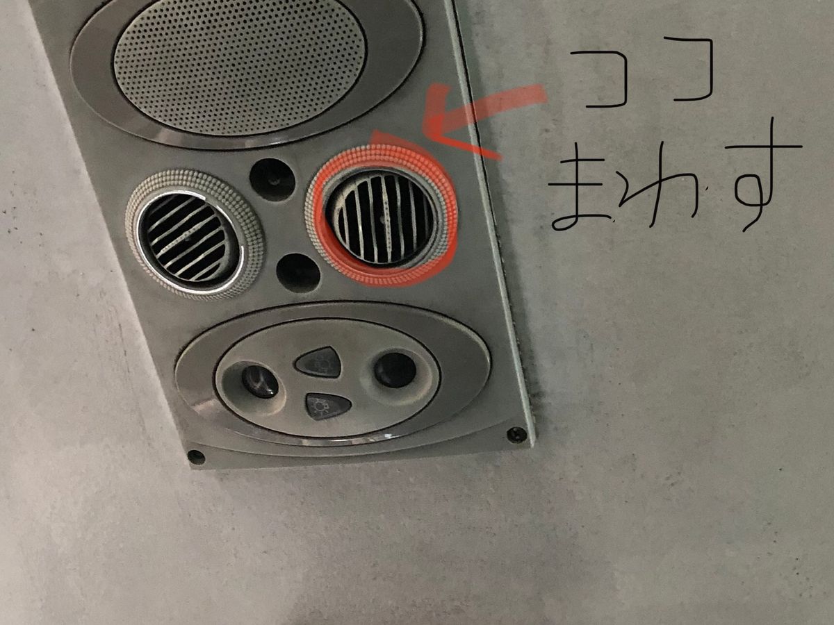 頭上にこの写真のタイプの吹き出し口がある場合は、吹き出し口の周りのリングを回せば止まりますので直撃は避けられます。