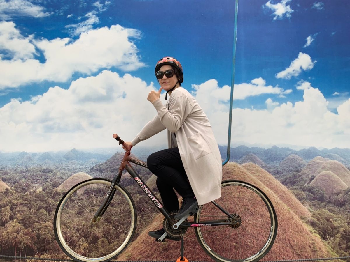 チョコレートヒルズでジップバイクを体験。