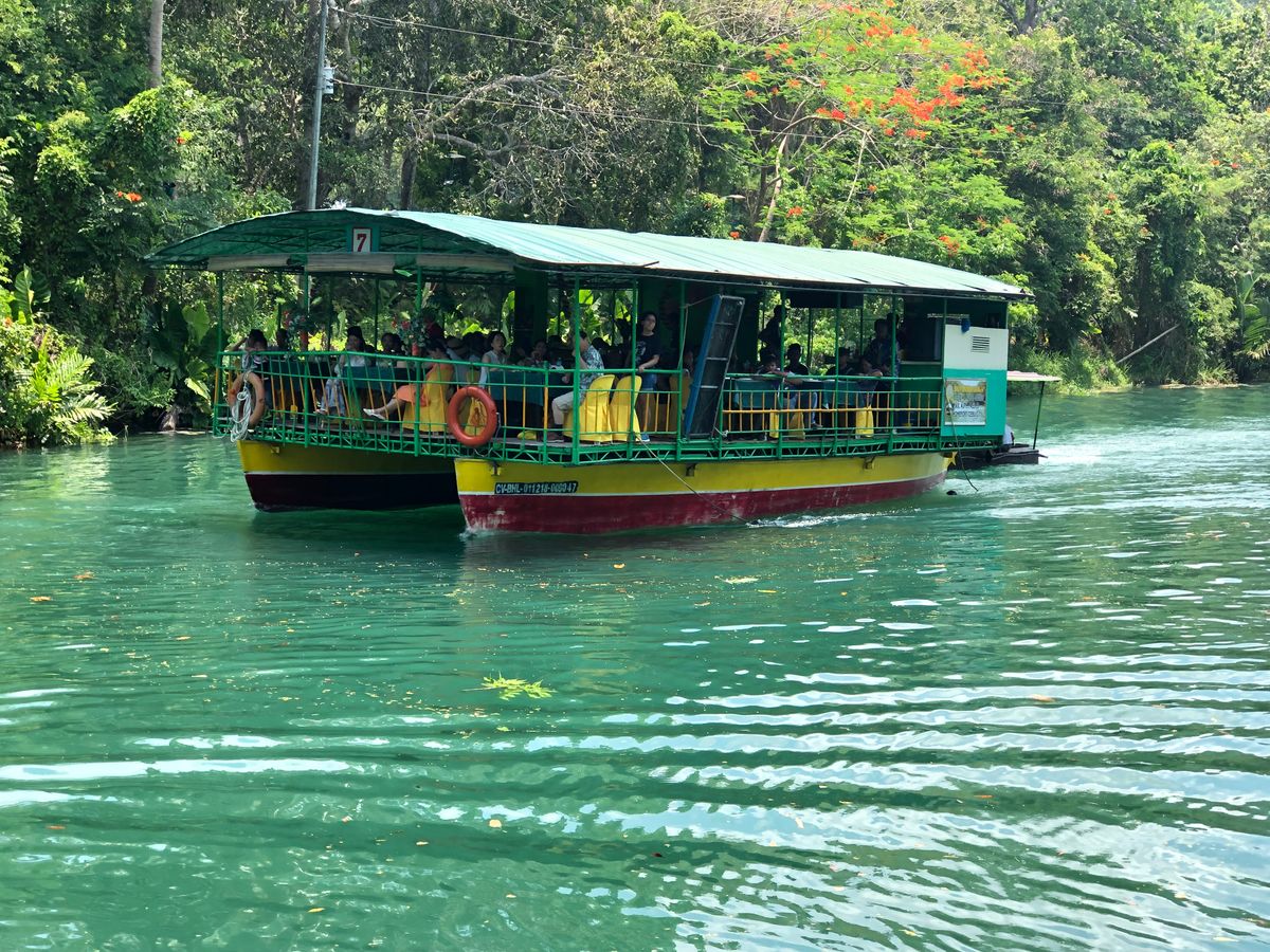 ホテル送迎からフェリーターミナルへ、息子が体調悪くトイレのお世話に成りガイドの説明が聞けなかったが日本人だけのツアーだったから周りに付いて行くだけで何とかボホール島到着たくさんの迎えが有るが我々は黄色その日は他にオレンジのグループ色でバスが振り分けられる。血盟記念碑、バクラヨン教会を見て、ロボク川ランチクルーズ、ビュッフェ形式で途中地元住民のダンスや竹の足挟まれそうなステップ見て感動した。その後ターシャ小さくて可愛い予想よりも小さくて暗い、ここでなんとスコールべちゃべちゃ小さな傘持ってガイドさん来てくれた助かる、スコール経験も有りでした。いよいよチョコレートヒルズへ思っていたよりも緑でしたがとても綺麗階段が250段位有ってハムストリングスがギリギリだった景色が素晴らしい登って良かった。その後1,080ペソでバギー参加めちゃめちゃ楽しい―何もかもが初体験で良かった。ボホールは治安が良いのがマニラからセブ移動して感じました。5月1日2日はお祭りで街は活気に溢れています、人数が多いのでフェリー迄の送迎の指示や船乗ってからの注意事項を徹底すべきだだと思う、帰りのバスは1組のために15分待って船着いて結局ホテル迄約1時間かかった。因みにタクシーで5分ラディソン迄。ガイドのジョイさん有難うございました。