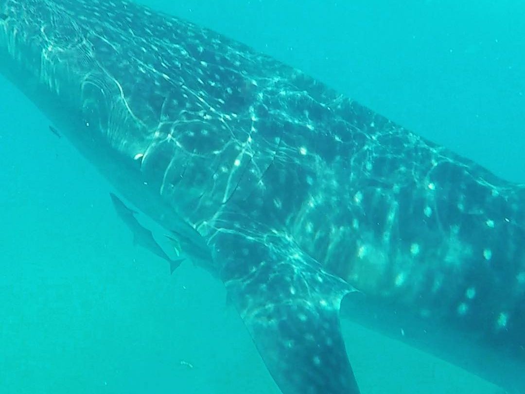 到着してすぐに海へ入ると10分もしないうちにボートの周りにジンベイザメがおり、現地スタッフから「入れ!」的なジェスチャー(笑)
