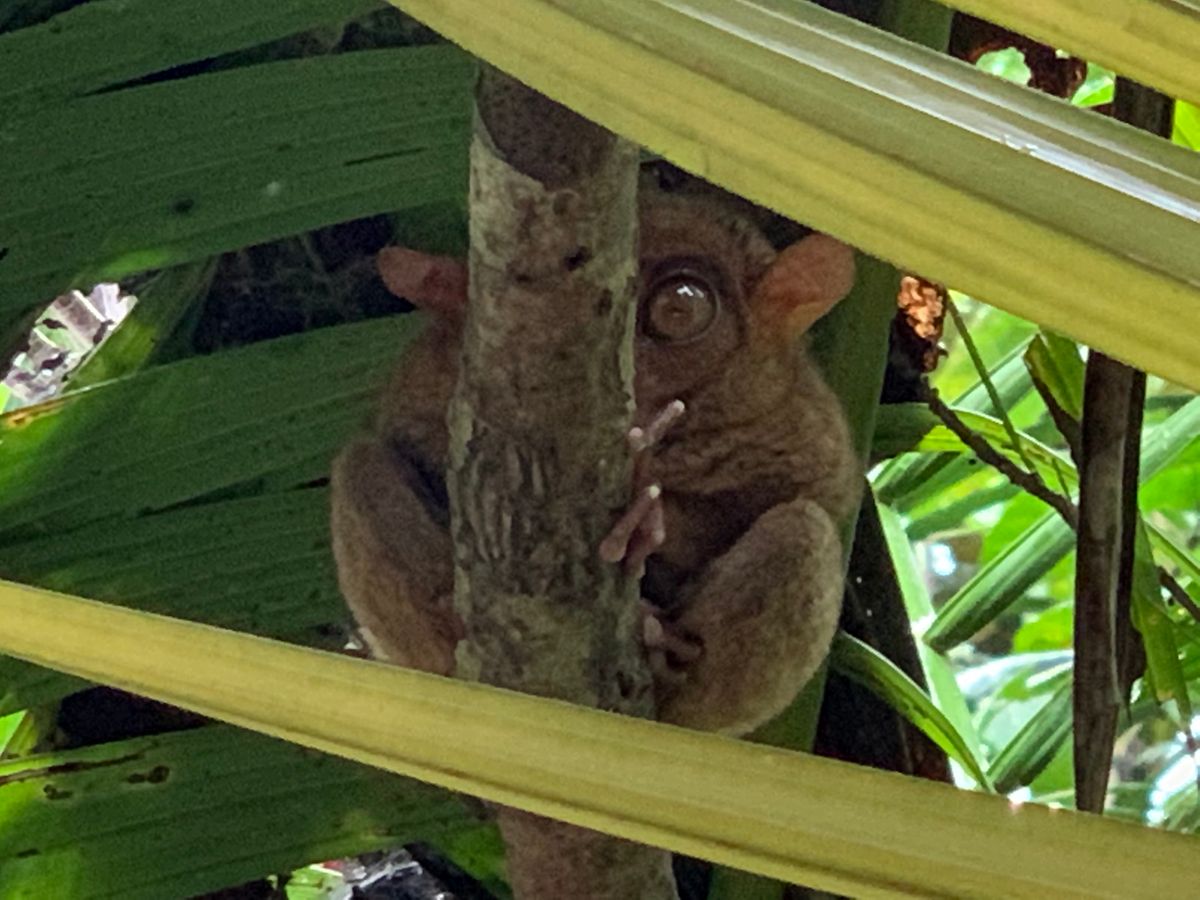 ターシャ、予想以上にかわいい‼️目を開けて、顔をくるーりと回して、また寝ました。ターシャのお土産を買いそびれて、残念!ターシャT - シャツ買えばよかった。ボホールにしか売ってないようです。