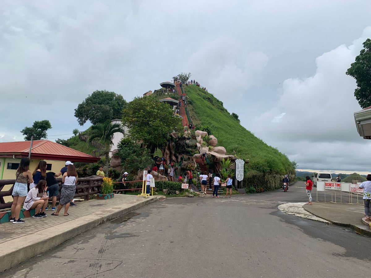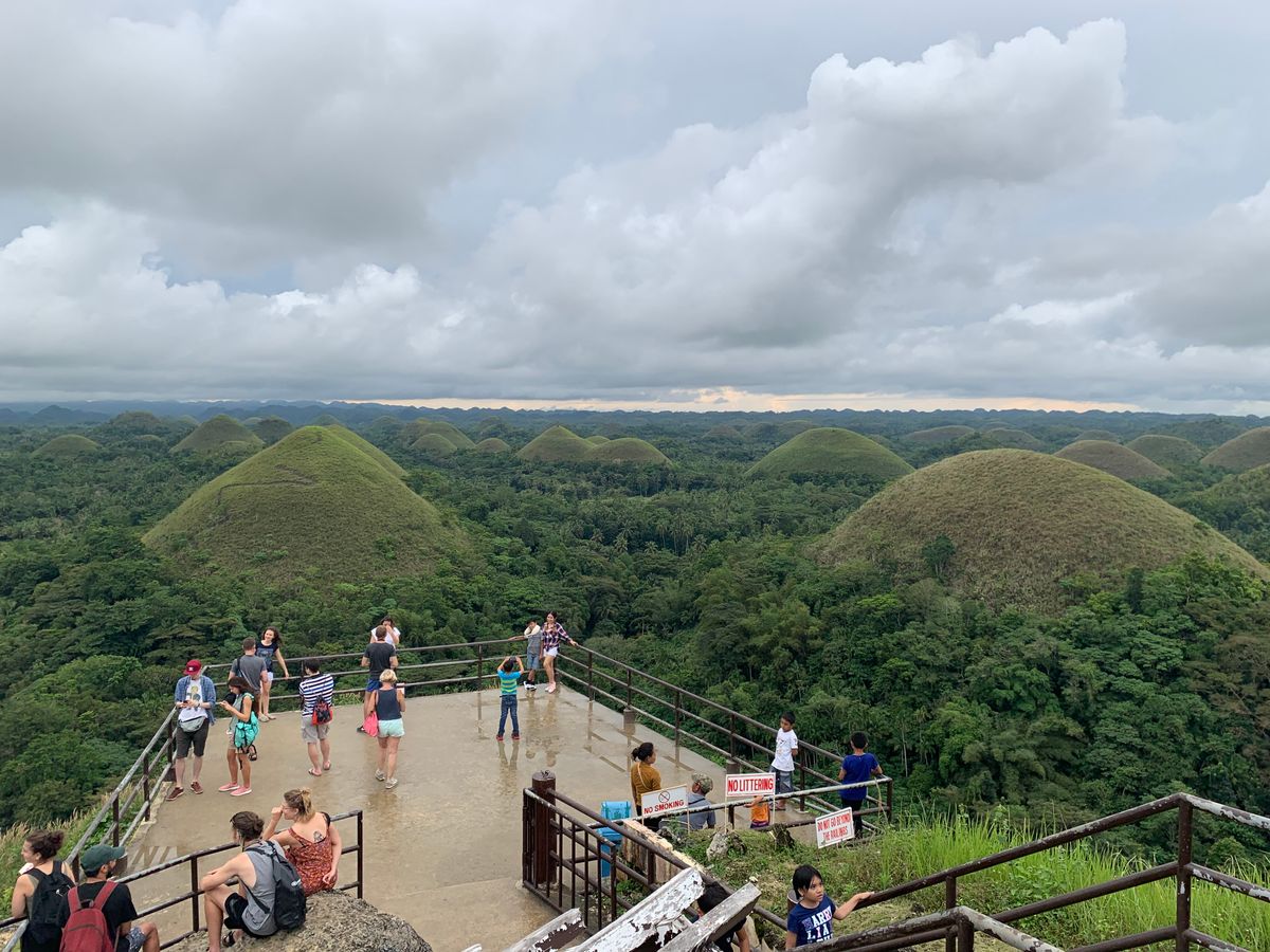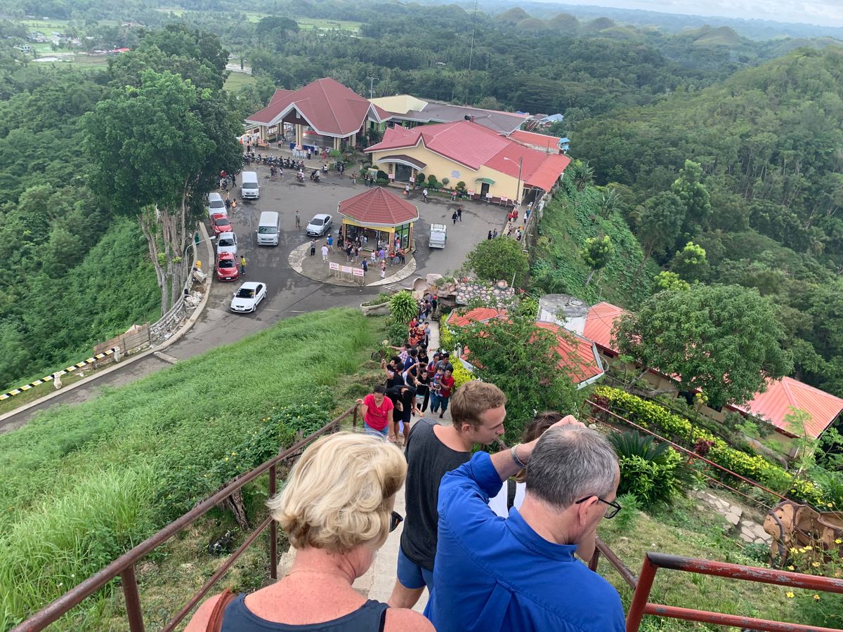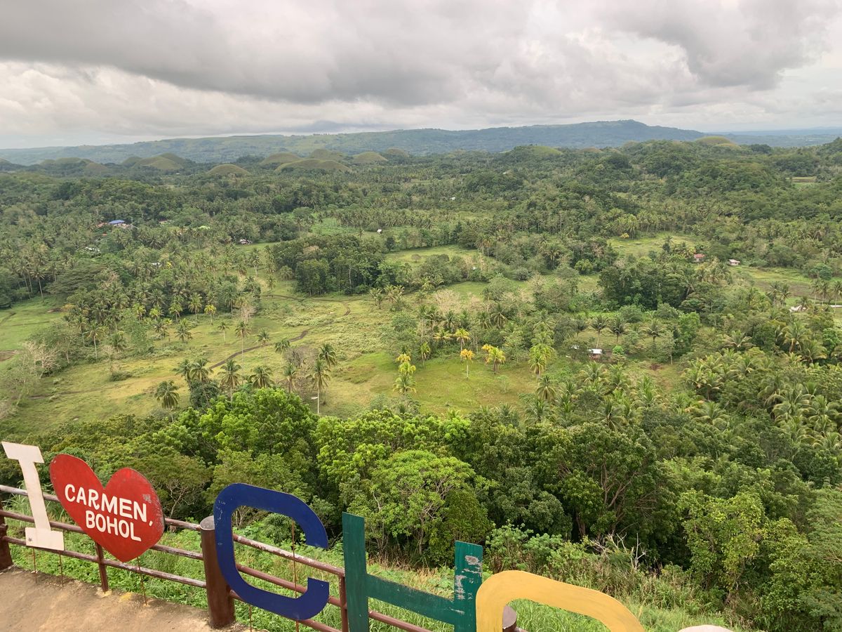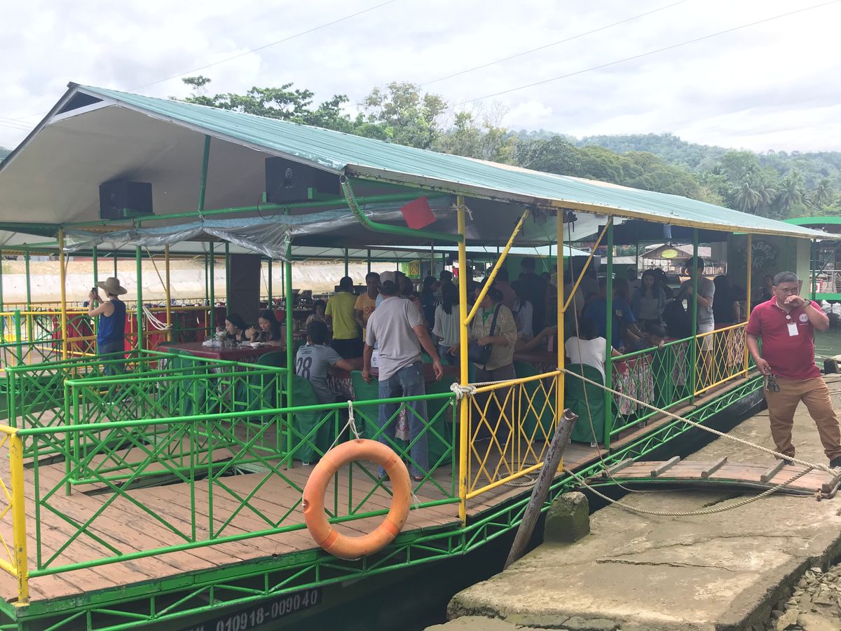 フェリーがボホール島についた後、他の参加者の方と合流して、新しいガイドさんと共に大きめの車に乗りました。教会等を見学しつつ、昼食の川下り会場へ向かいます。昼食はビュッフェ形式で、船の上で食べます。とても美味しかったです!ご飯の後は30分ほど車に乗り、ターシャを見に行きました。近くでは見られないので、高倍率のズームに対応したレンズがあると、良い写真が撮れると思います。その後は更に30分車に乗り、チョコレート丘に向かいました。高台の展望台に行き30分ほど景色を楽しみました。