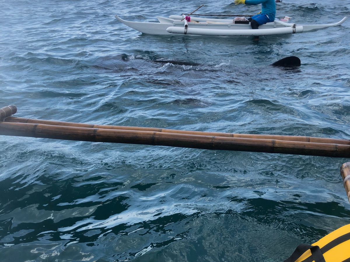 着いてすぐ、船(手こぎボート?)にのりました。すると、すぐにジンベイザメ♡すごく大きく、わぁ〜(๑>◡<๑)とテンションがあがります。