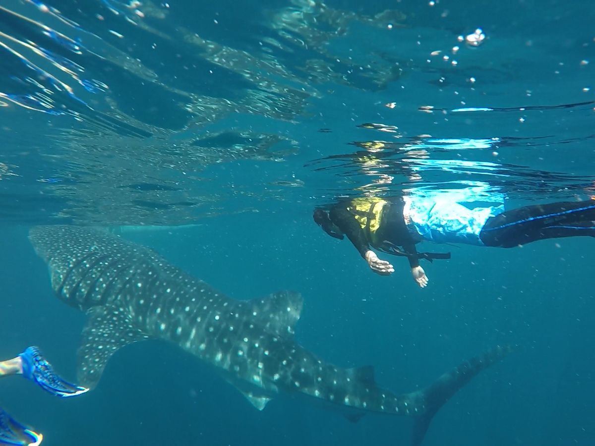 日本ではジンベイザメと一緒に泳げる所は聞いたことがないので、ジンベイザメと泳げるステキな機会だったです。