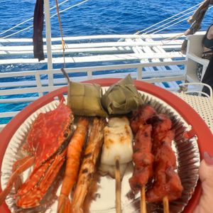 ä»ååéãšåããŠã®ã»ãå³¶ã§ãã¡ãã®ãã¢ãŒã«ç³ã蟌ã¿ãŸãããå®éãã¢ãŒã«åå ããã§ã¯æµ·ã®ããããçåä¿¡åçã§ãããæ³å以äžã®ããããã§ããïŒïŒ(ãã¡ãã倩åãªã©ã«ãå·Šå³ãããã®ãããããŸããã)è¹äžã§é£ã¹ãBBQã倧å€çŸå³ãããŠããŒãã«(çŒããã°ã¿ãããªã®ïŒ)ã倧奜ããªå³ã§ããïŒãªããšèšã£ãŠãæ°é®®ãªãã«ãŒãçãã ãããã§çŸå³ãããŠãããã§ãé£ã¹ããŸããâ¡â¡ã¬ã€ããããåªãããŠåéãå°ãè¹é ãããæããã£ãšæ°ã«ãããŠäžãããããã®å¯Ÿå¿ã ãªãšæããŸãããè²ã ãäžè©±ã«ãªãæ¬åœã«ããããšãããããŸãïŒæ¬¡ã»ãå³¶ã«è¡ãæã¯ããå°ãé¢ããã¢ã€ã©ã³ããããã³ã°ããŸããã¡ãã®ãµã€ãããã§æ¯éãé¡ãããããšæããŸãïŒïŒãšã«ããæã¯ç¡ãã®ã§çããäœéšããŠã¿ãŠãã ããïŒïŒ