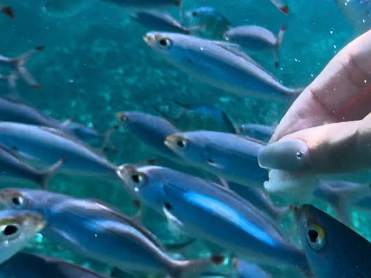海がとても綺麗で、魚たちにエサを用意してくれてあって、間近でかわいい魚がたくさん見れました。