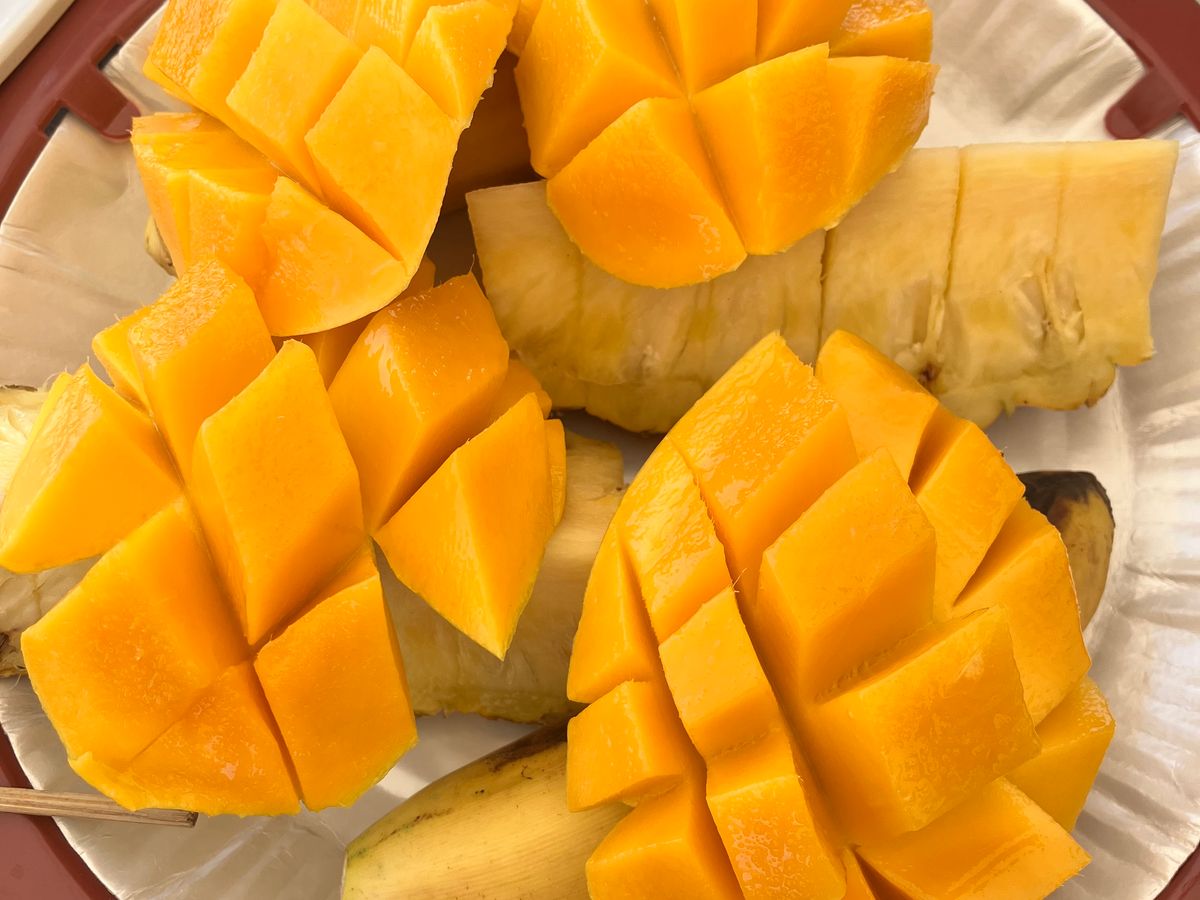 船で1人ずつにバーベキューが用意されてあって、フルーツのマンゴーもとても美味しかったです。船上は風があるので、上着は絶対必要です!