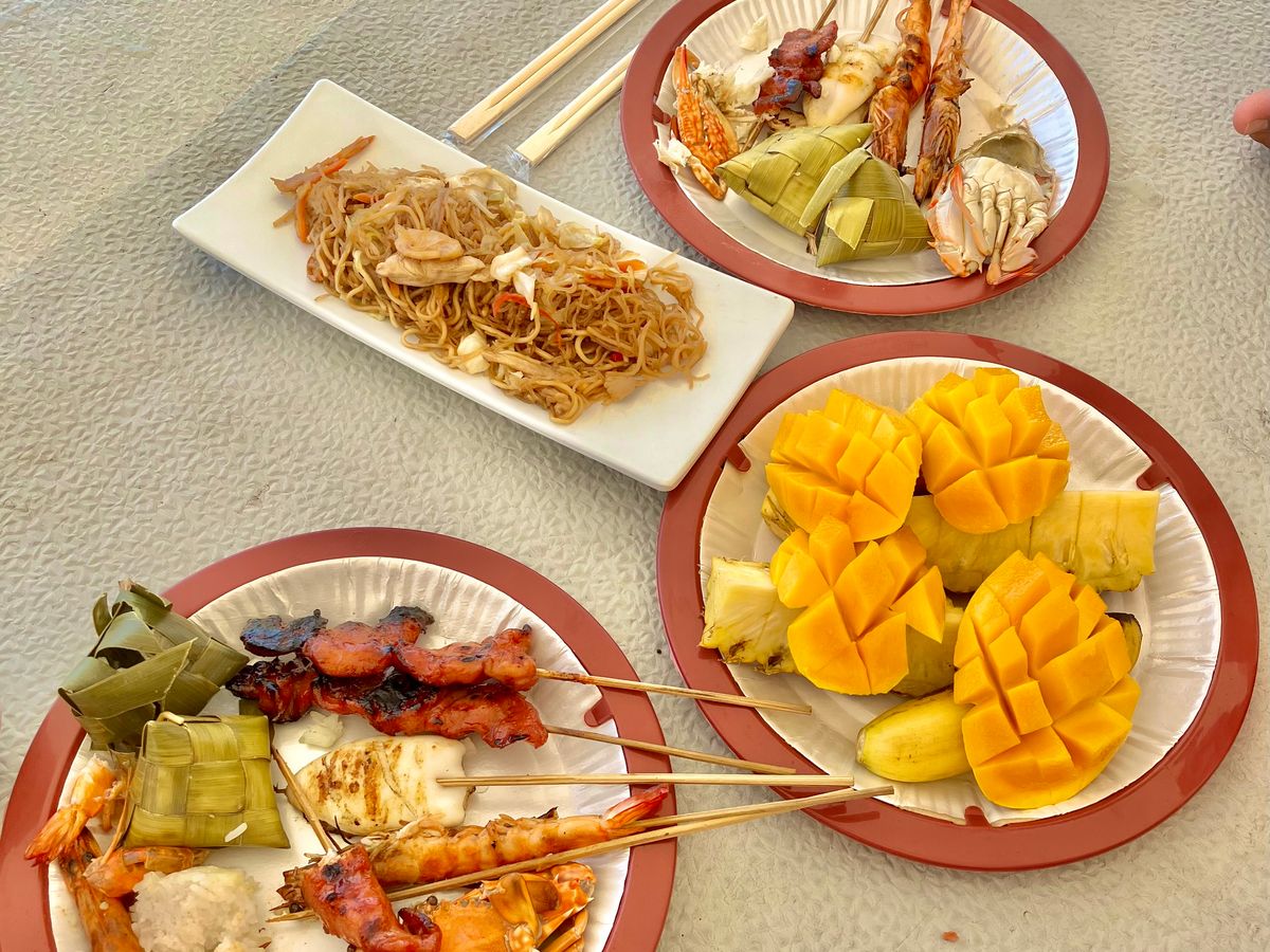 BBQランチは、魚と肉、海鮮などの料理や最後にはマンゴーなどのフルーツが盛りだくさんの料理が出てきて非常に美味しかったです!