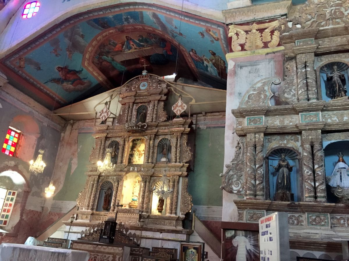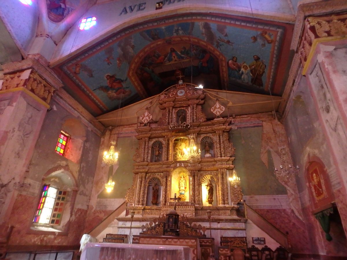 タグビララン港到着後まずはバクラヨン教会へ!大地震の修復で一部しか見れませんがとにかく、綺麗、美しい、感動です‼天井かなり高いです。これは是非見るべきです。