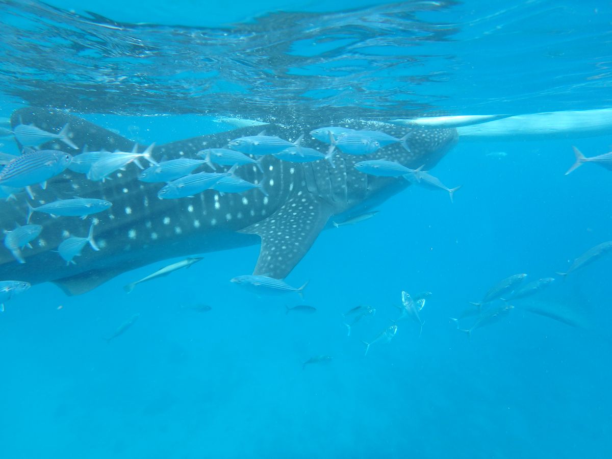 ボートに乗って、ジンベイザメの近くに行きます。30分と時間が決まっていましたが、30分で十分でした。それ以上は体力が持たないくらいジンベイザメと写真を撮ることができました。