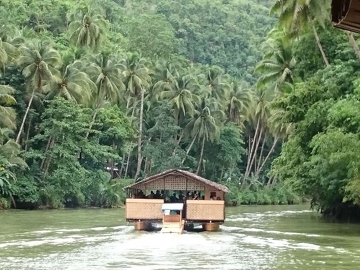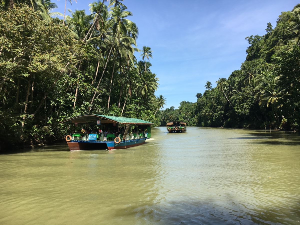 3歳と5歳の子連れ、家族4人で参加しました。6:10プランテーションベイ発、7時位には港(セブ島)に着きました。セブ島の港ではカフェがあり、そこで朝ごはんをサンドイッチ、カップケーキを食べました。その後、港近くを散歩しに、サンペトロ要塞(8時から開く)に行きました。港から徒歩5分程度です。そうしているうちに出港時間9:20になり、船で出港ですが、この船が相当揺れる!!酔い止めを夫婦で飲み、吐くには至りませんでしたが、吐いてる人多数いました。ボホール島に着くと酔いがおさまらないまま、車で移動、川下りにまた船に乗ってランチクルーズです。酔いがおさまっていなかった私はあまり食べませんでしたが、家族は皆おいしそうに食べてました。料理もたくさんあり、余ってしまっていました。進行方向左の席がオススメです。(演奏者が後ろ側となる)進行方向左側で現地の方たちの歌とダンスがみれます。が、席はガイドが指定しますが、言えるなら左側を指定しましょう。
