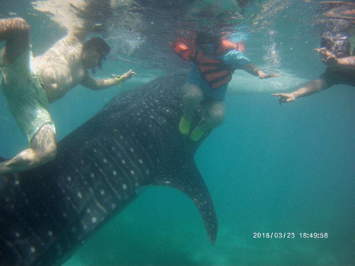 ほかのお客さんが居たらそうもいかなかったとおもいます。レンタルカメラもお願いしておいたので、SDカード持参で700ペソ、後ろに来た時にダウン↓連写で全部で200枚位撮ってもらえました。最高の思い出になりました。息子は、行くまではあまり乗り気ではなかったのですが、行ってよかた~最高だったね!と言ってました。今度は、スキューバのライセンスを取って一緒にジンベイと泳ぎたいと思います。イタリアンランチのスパゲッティもボリュームがあって男性でも満足です。