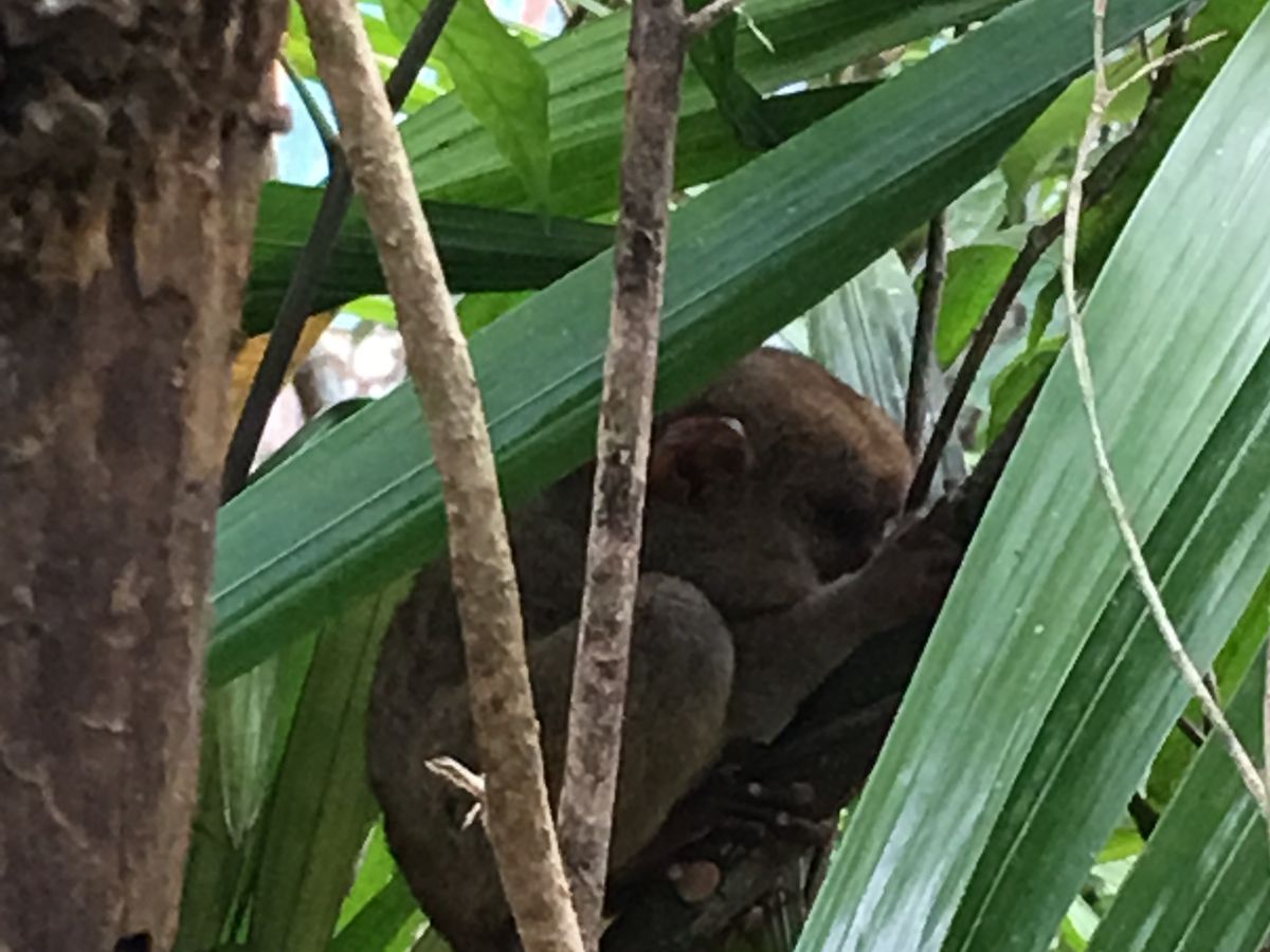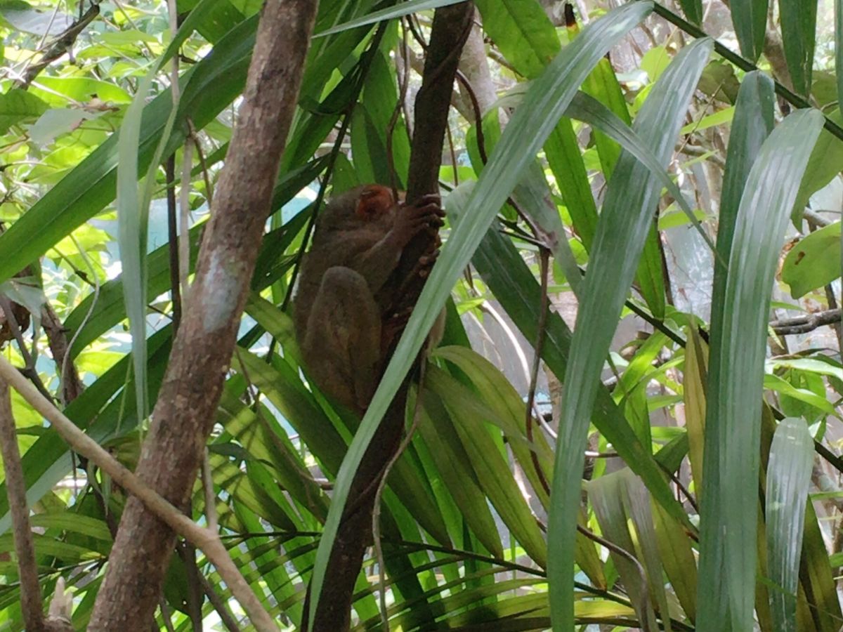 手が届く程の距離で観察が出来て、木から木へ素早く飛び移るターシャも見れました。