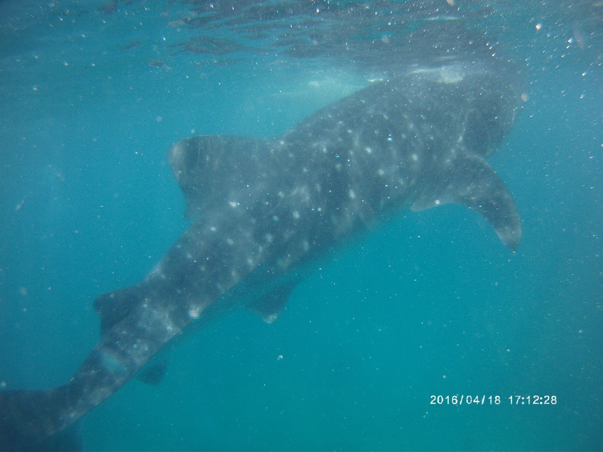 行く前は片道3時間以上かけて行くのに、ジンベイざめを見ることができるのはたった30分程度ということで満足できるか心配でしたが、実際は頻繁にジンベイざめが寄ってくるので十分でした。むしろ飽きてくるのでちょうどいいくらいかも・・・