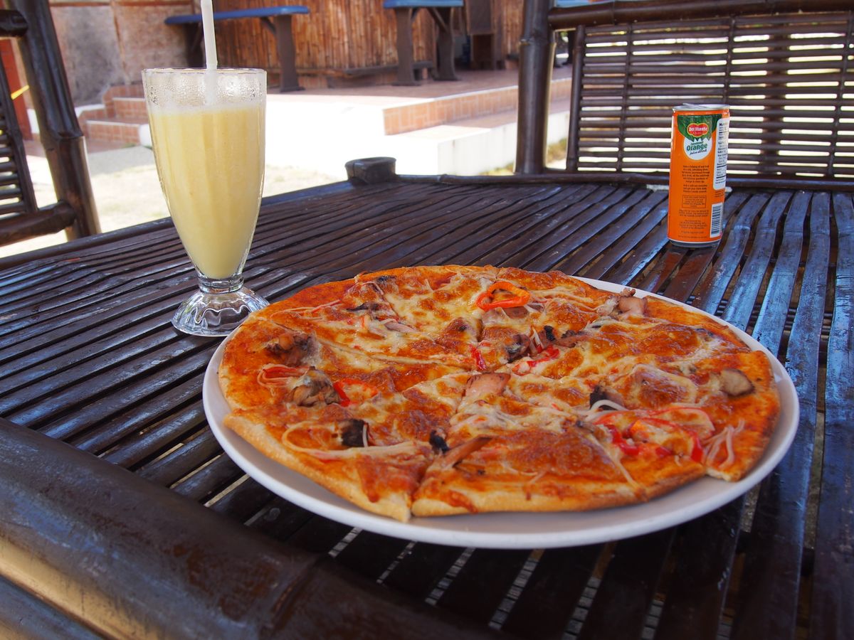 メニューは卵スープとお肉の春巻き、焼きそば、いかに野菜を詰めて炒めたもの、チキン、ライス、マンゴーアイスケーキでした!デザートは忘れられていたようでガイドさんが言ってくれて持って来てもらいました!デザートを食べてる時にカレーを2回持って来ようとしたけど別のテーブルのだったのかな?ワンドリンクついてますが、バナナシェイクは別料金だったので無料のドリンクはちゃんと確認した方がいいですね!でも85ペソ(200円ちょい)だったのでドリンク安いと思います! ご飯はどれもとても美味しく頂きました!特に私はイカの料理がいい味付けで美味しかったです!ただ、いかの中の野菜の中に青唐辛子が結構入っているので、辛いの苦手な方は要注意です!(笑)