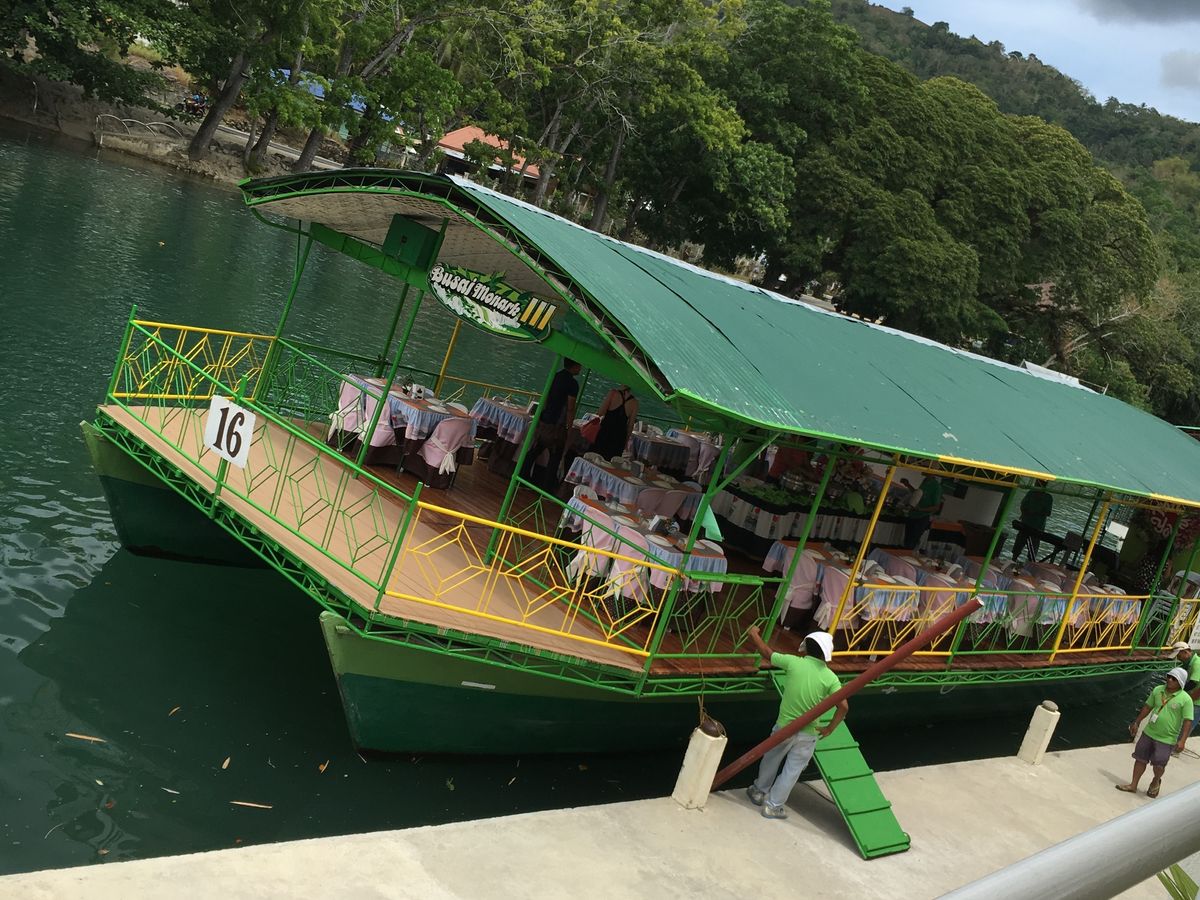 私たちのホテルは7時45分にお迎えが来ました。フェリーのターミナルについて1時間ほどのんびりした後いよいよボホール島へフェリーで出発しました!揺れはほとんどありませんでした♪約2時間でボホール島に到着、フェリーから降りたらガイドの人が待っててくれています。バスに乗りまず最初にターシャを見に行きます。この日は運良くターシャを5匹ほど見ることができました。ターシャは目がすごく大きくてすごくかわいかったです。ガイドの人もたくさん写真を撮ってくれました。ターシャを見た後はまたバスで移動、リバークルーズへ向かいます。まずはじめにフィリピン料理の食べ放題を食べました。味はまあまあでそこそこ日本人にとってはやばめの料理もありました。でもバイキングなので自分お好きなものを好きなだけ食べれます♪ご飯を食べていると船が動き出し、リバークルーズがはじまります。風は気持ちよくて川は綺麗ですごく良かったです。次はチョコレートヒルズに向かいます。すごくよかったです。次は壊れている教会に行きます。地震で壊れた教会でした。正直これはよくわからなかったです。最後にお土産屋さんにより帰ります。ツアーガイド参加すごく丁寧で気を使ってくれてすごく快適で楽しい旅でした!ホテルについたのは9時頃でした。すごく楽しくて大満足です!!