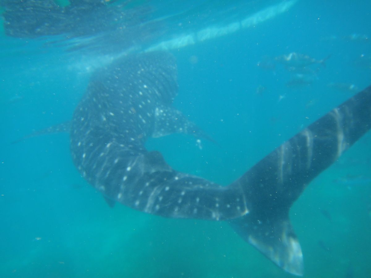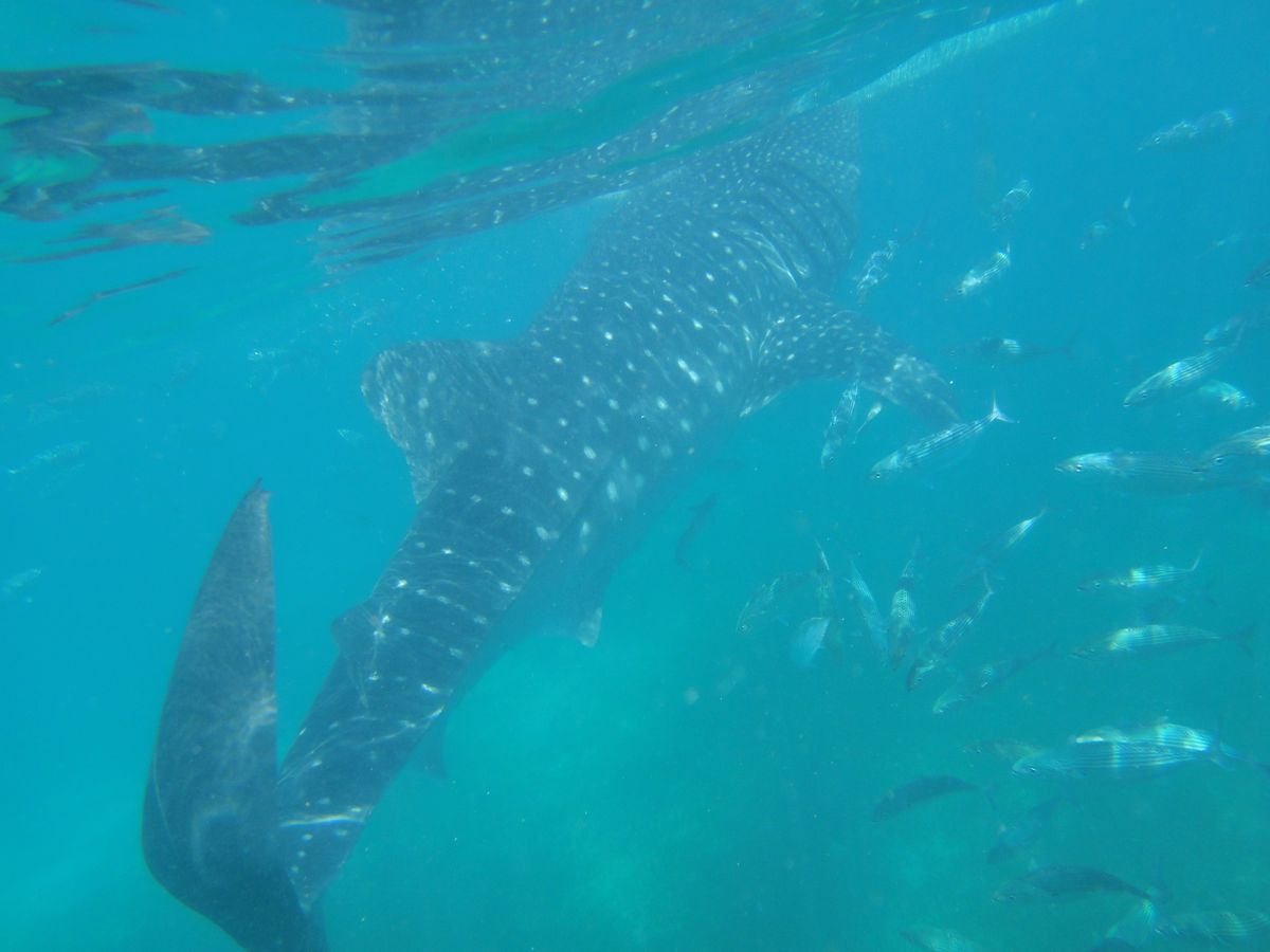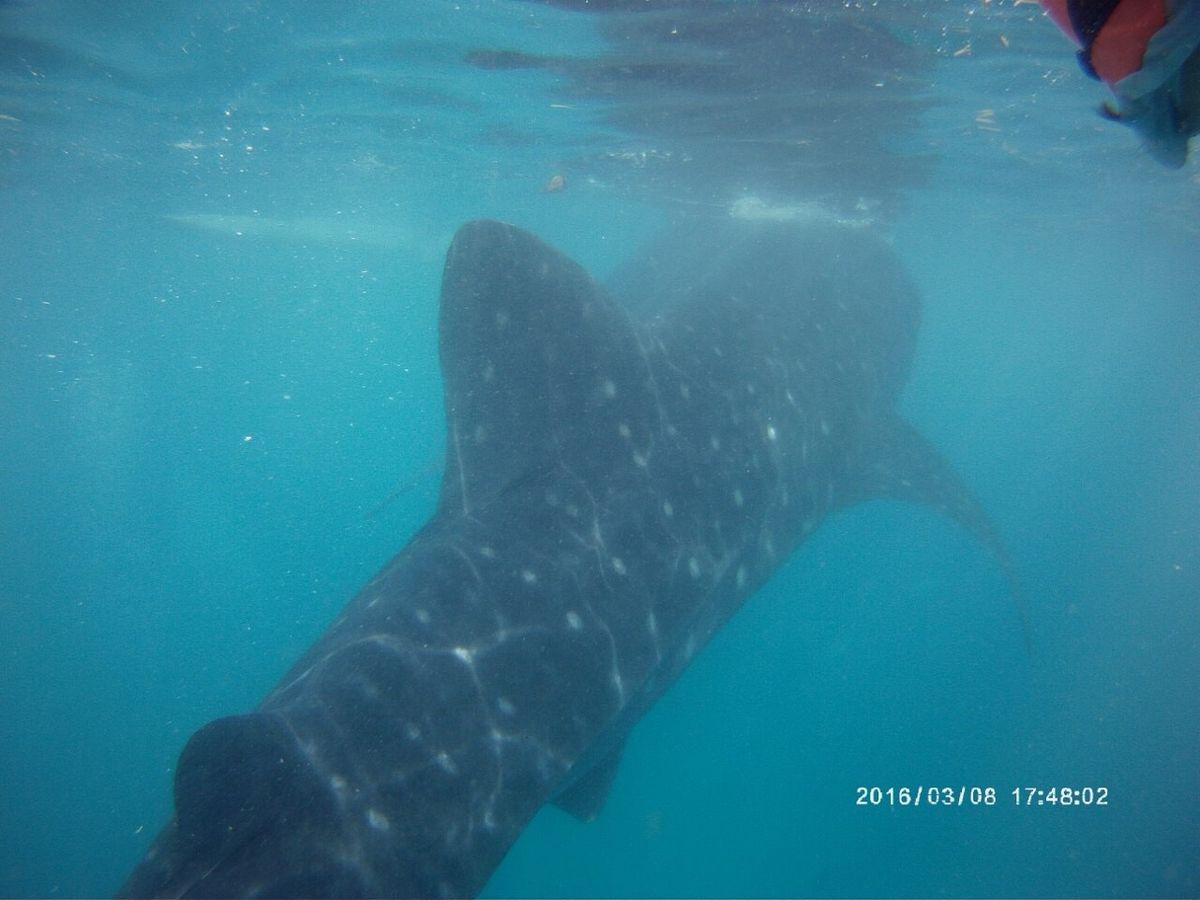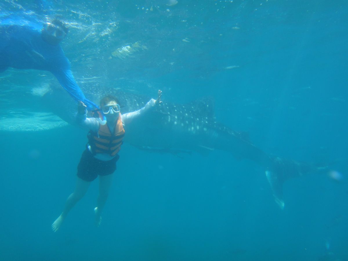 6人で2人の現地ガイドさんがつき、私たちは水中カメラを持っていたのでオプショナルの写真撮影を頼みませんでしたが、私たちが泳げないのを見かねてか、ジンベエザメと写真を撮ってくれました!ジンベエザメは何度も行き来をし、手を伸ばしたら触ってしまうぐらい近くを通ったり、とても大きくて、感動しました!